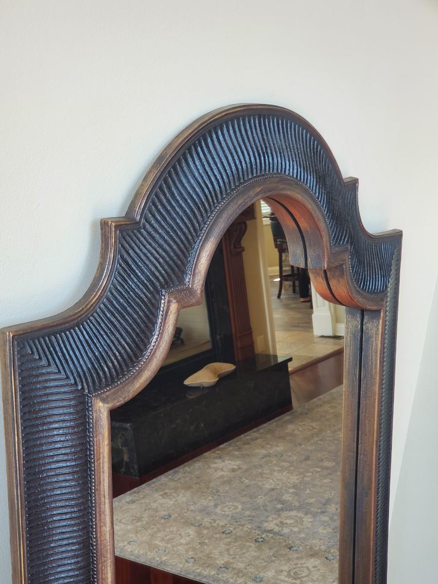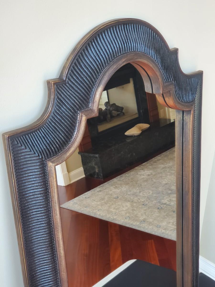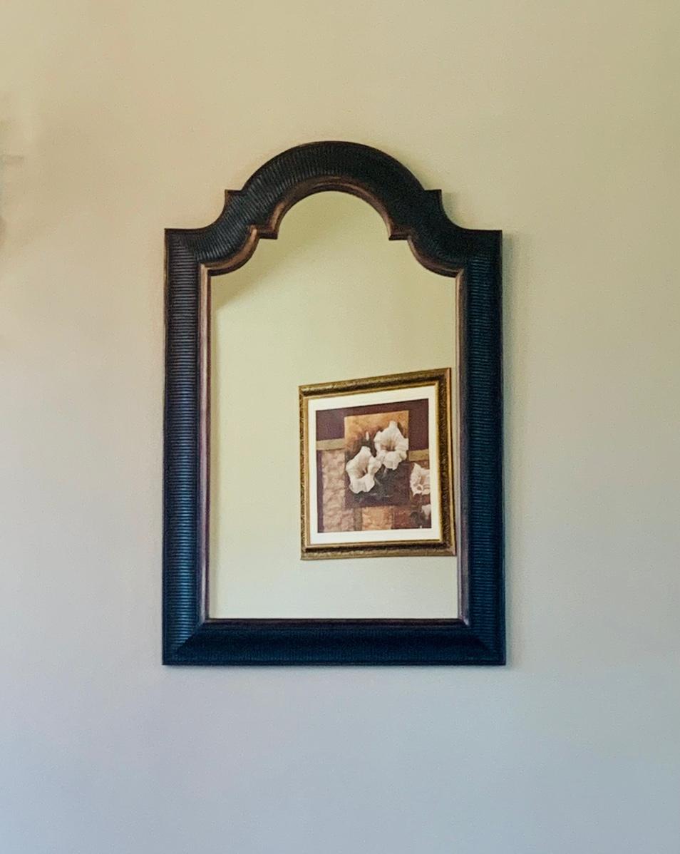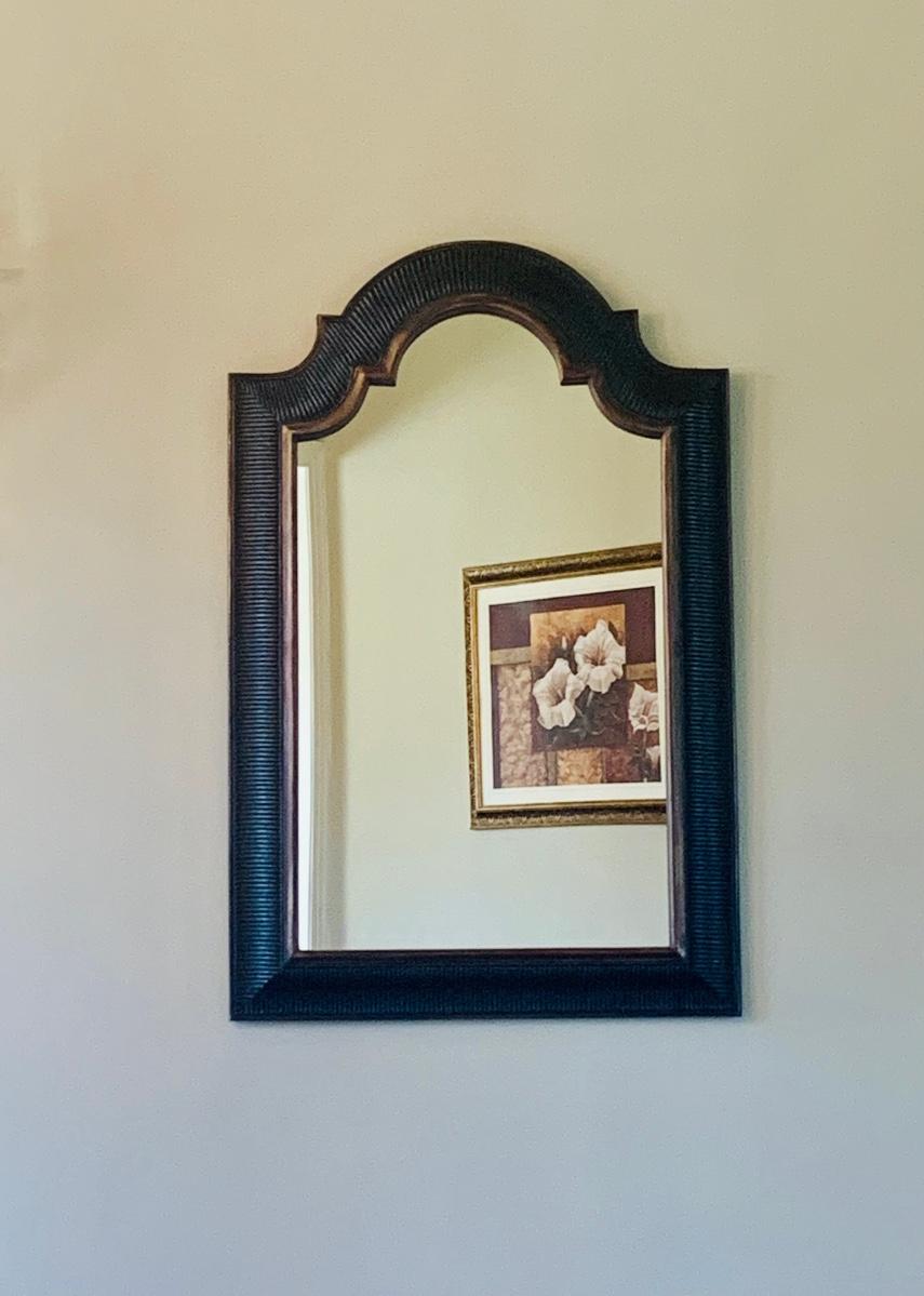 LOT 10G: Scalloped Top Black & Bronze Tone Mirror