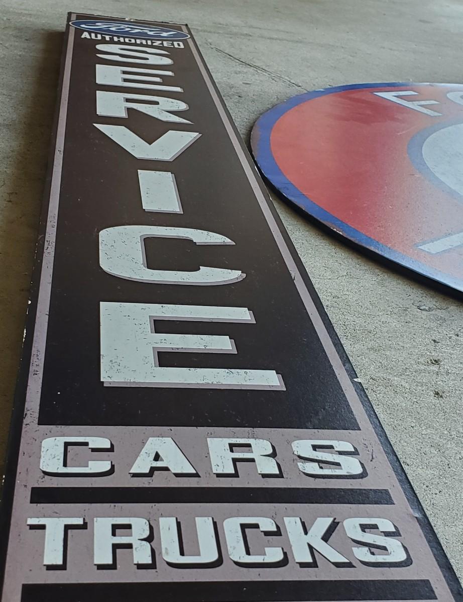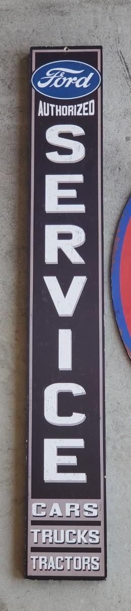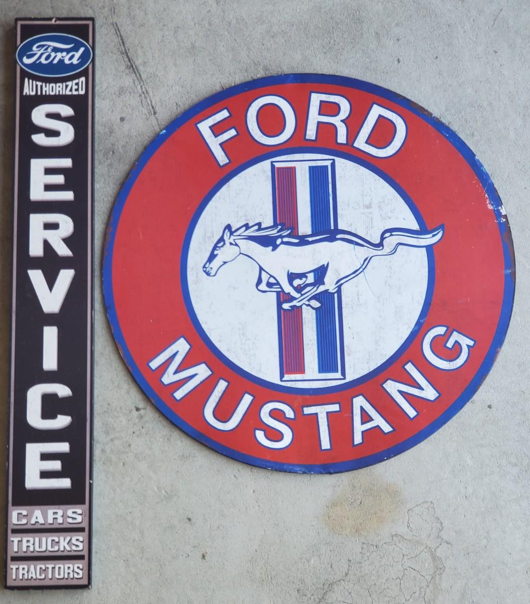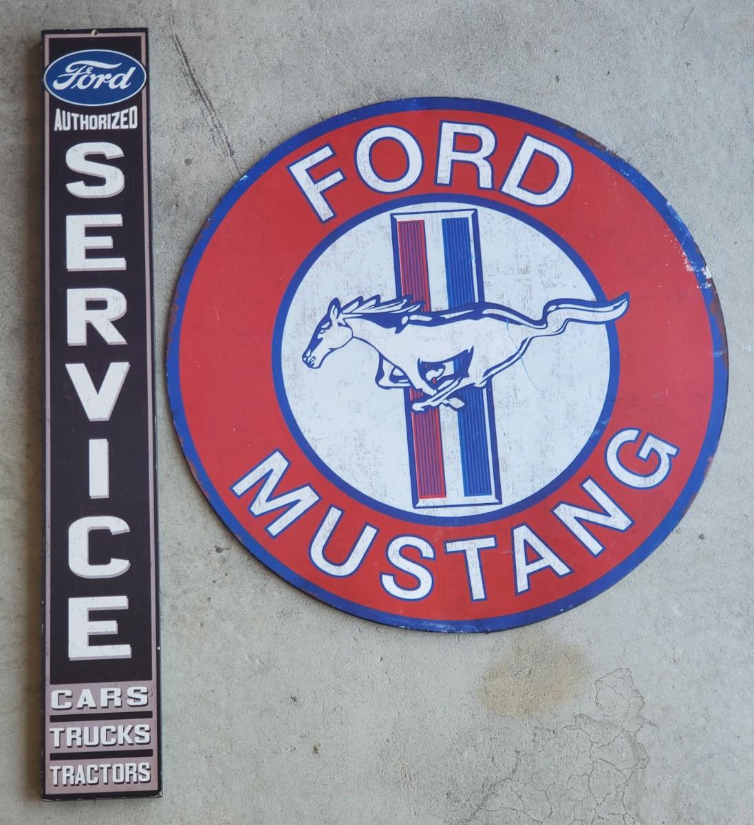 LOT 21G: Wood "Ford Service" Sign & Home Decor Tin Mustang Sign
