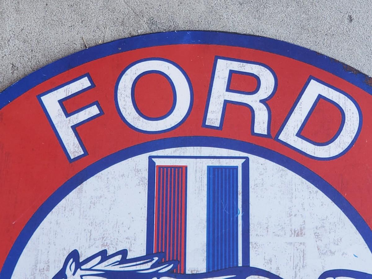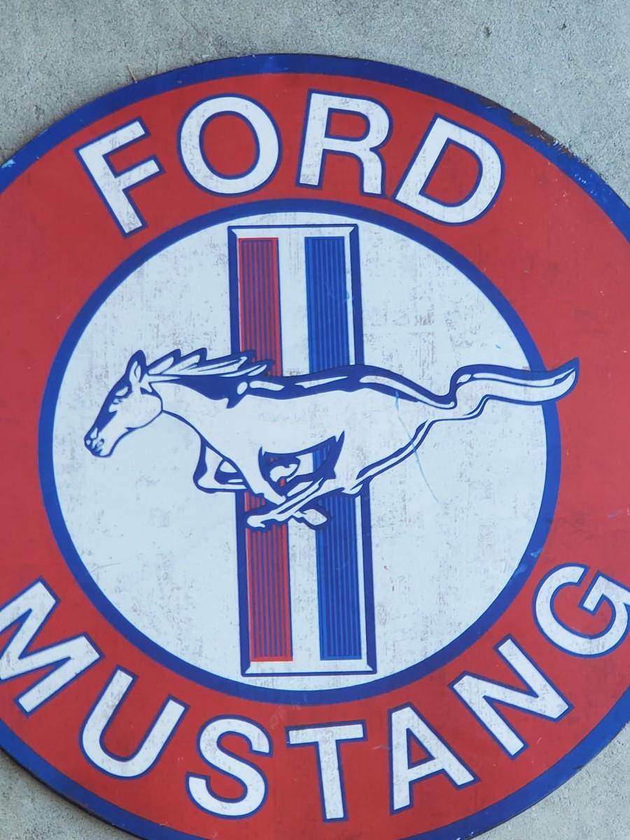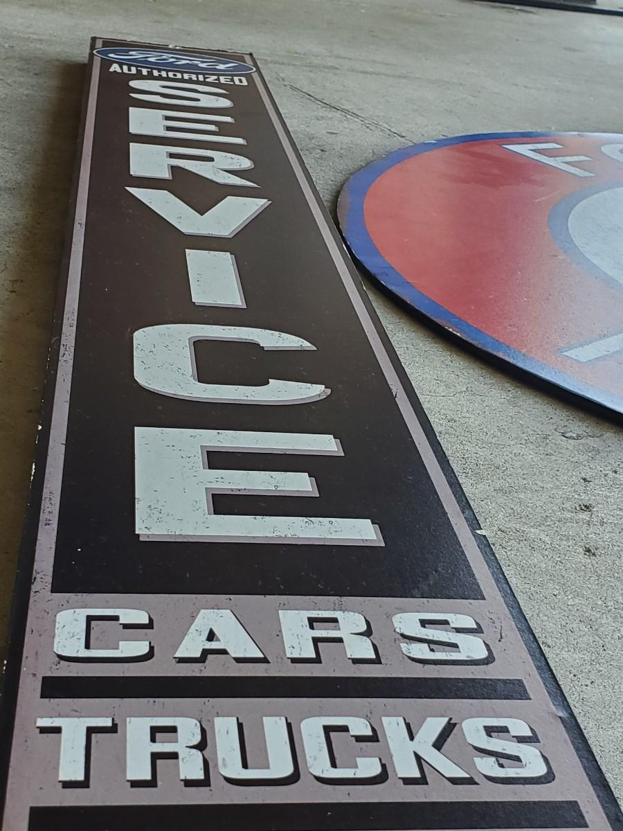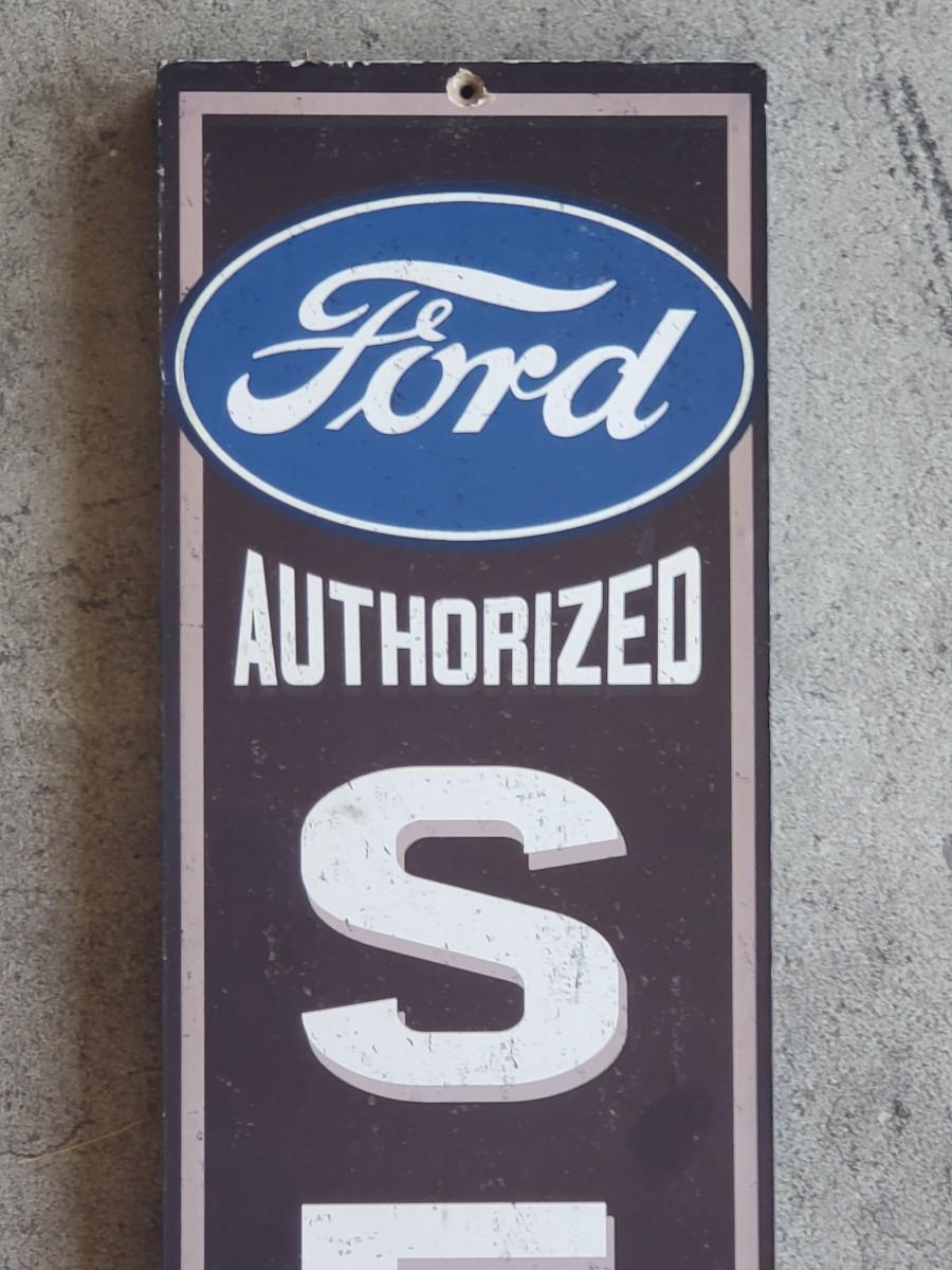 LOT 21G: Wood "Ford Service" Sign & Home Decor Tin Mustang Sign