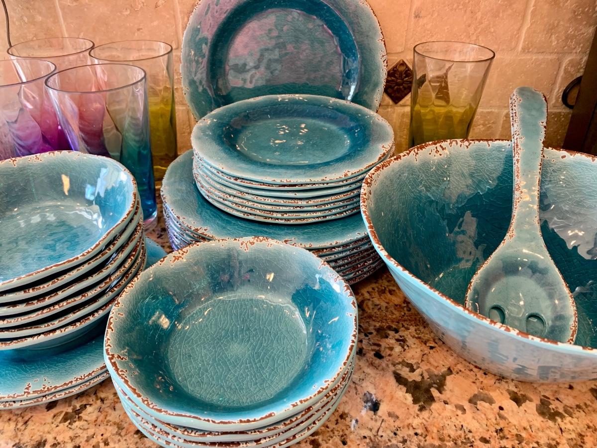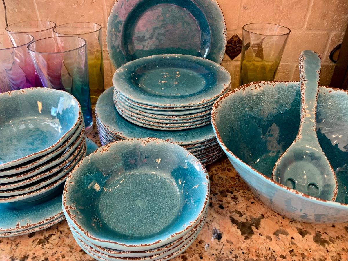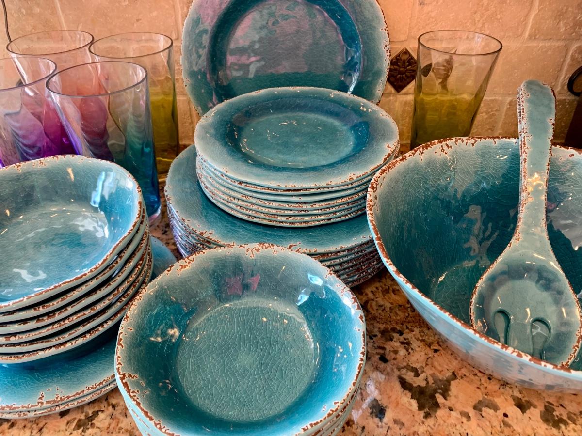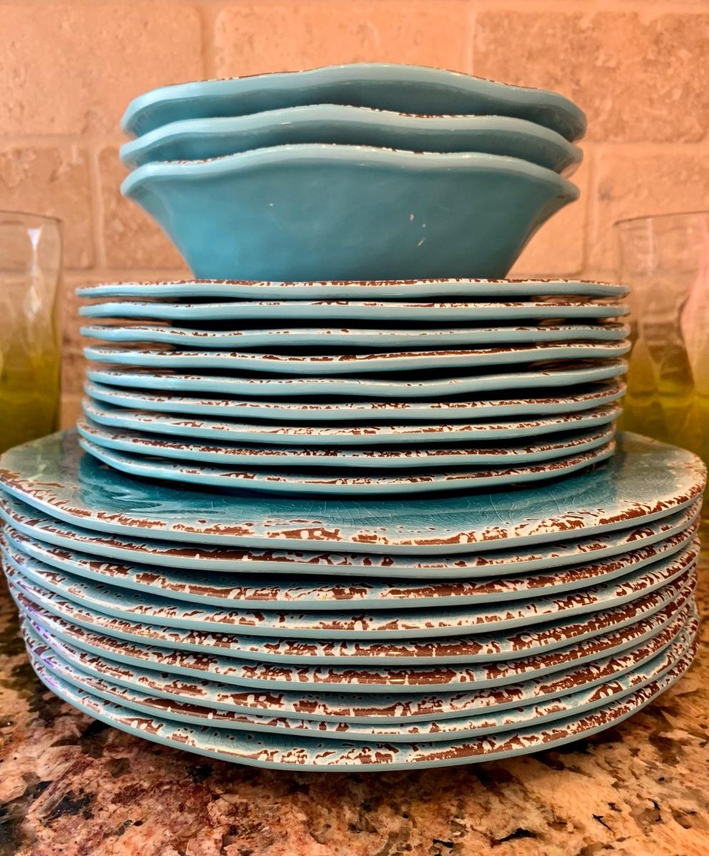 LOT 29R: Al Fresco Melamine Rustic Crackled Farmhouse Dinnerware w/Beverage Cups