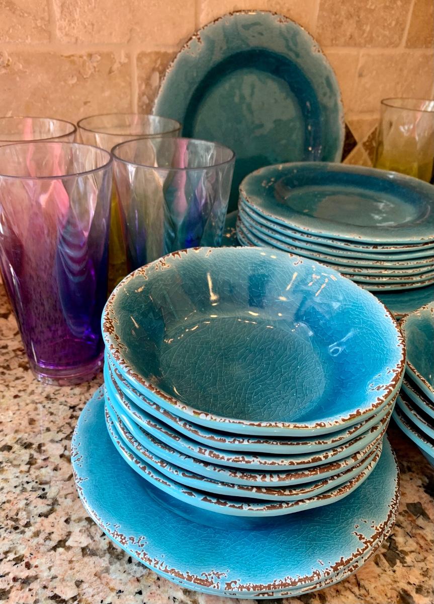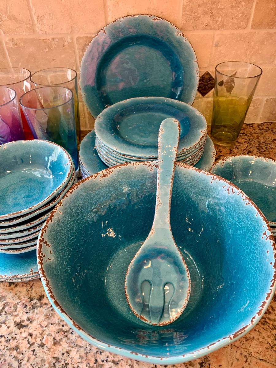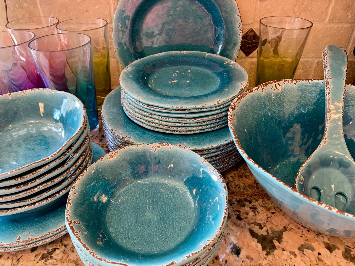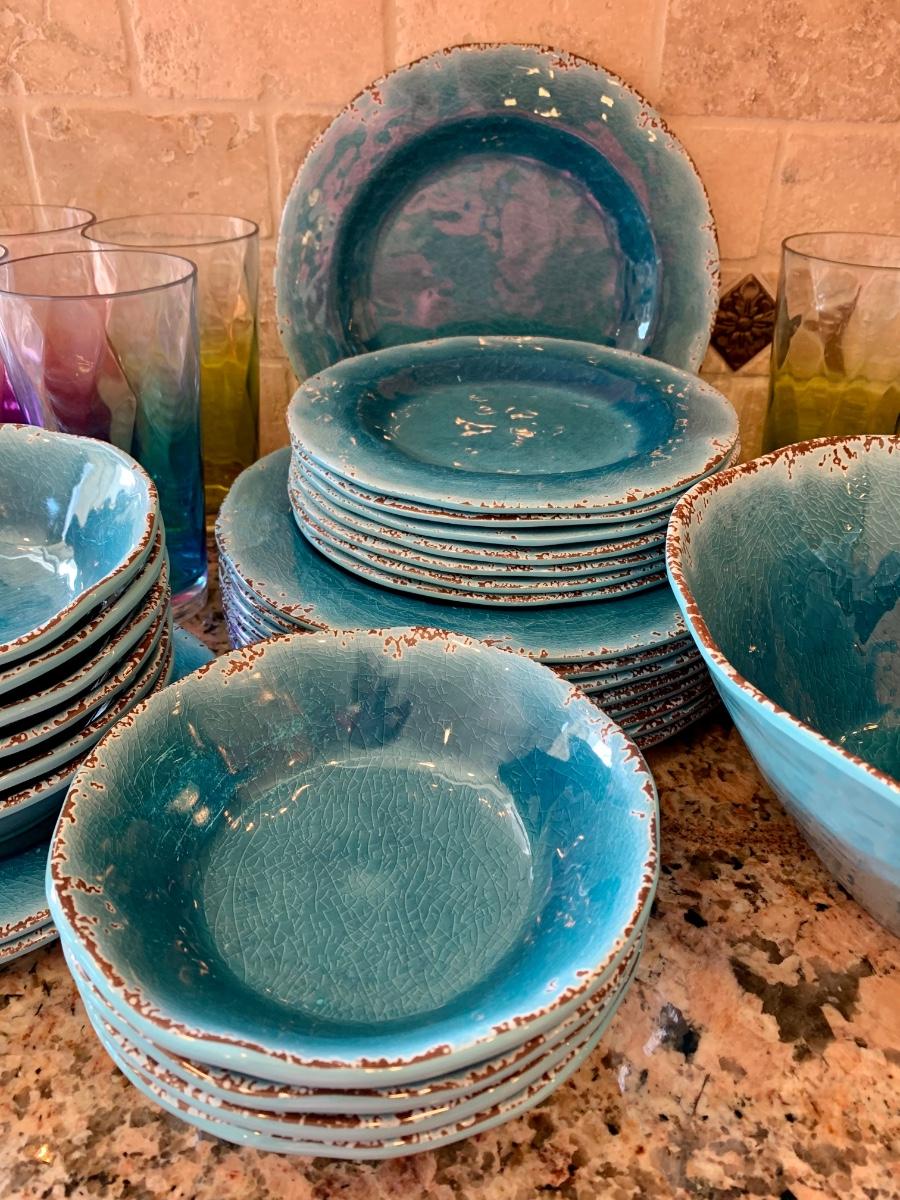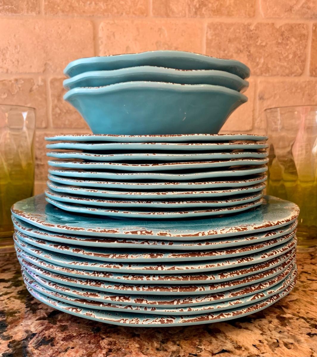LOT 29R: Al Fresco Melamine Rustic Crackled Farmhouse Dinnerware w/Beverage Cups