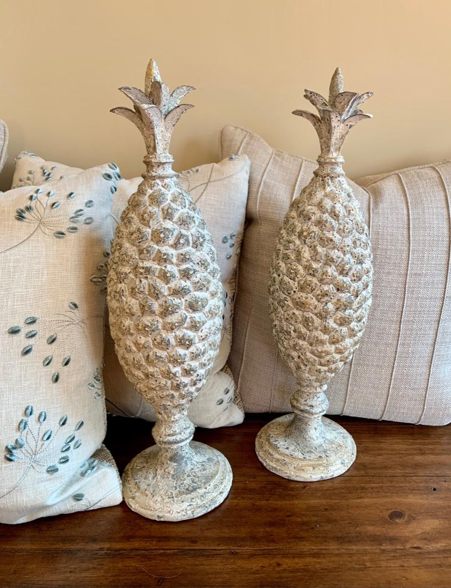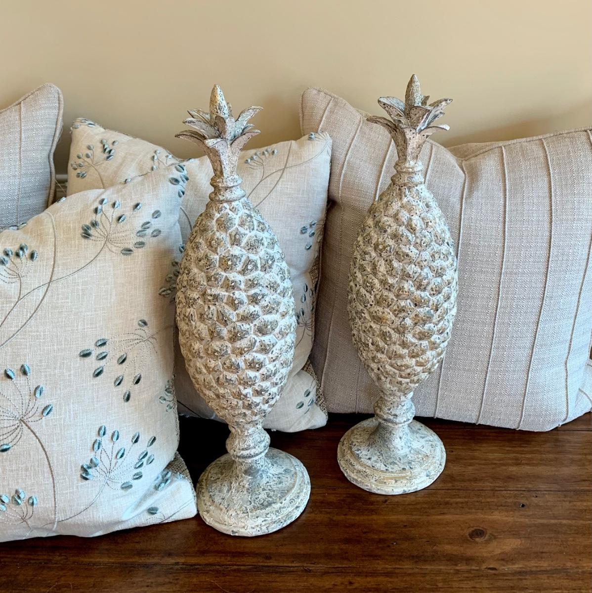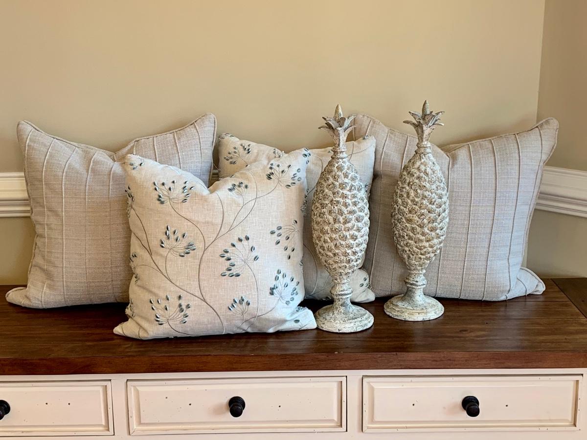 LOT 32R: Comfy Cozy Pillow Collection & Home Decor Antique Pineapple Finials (Bench NOT Included)
