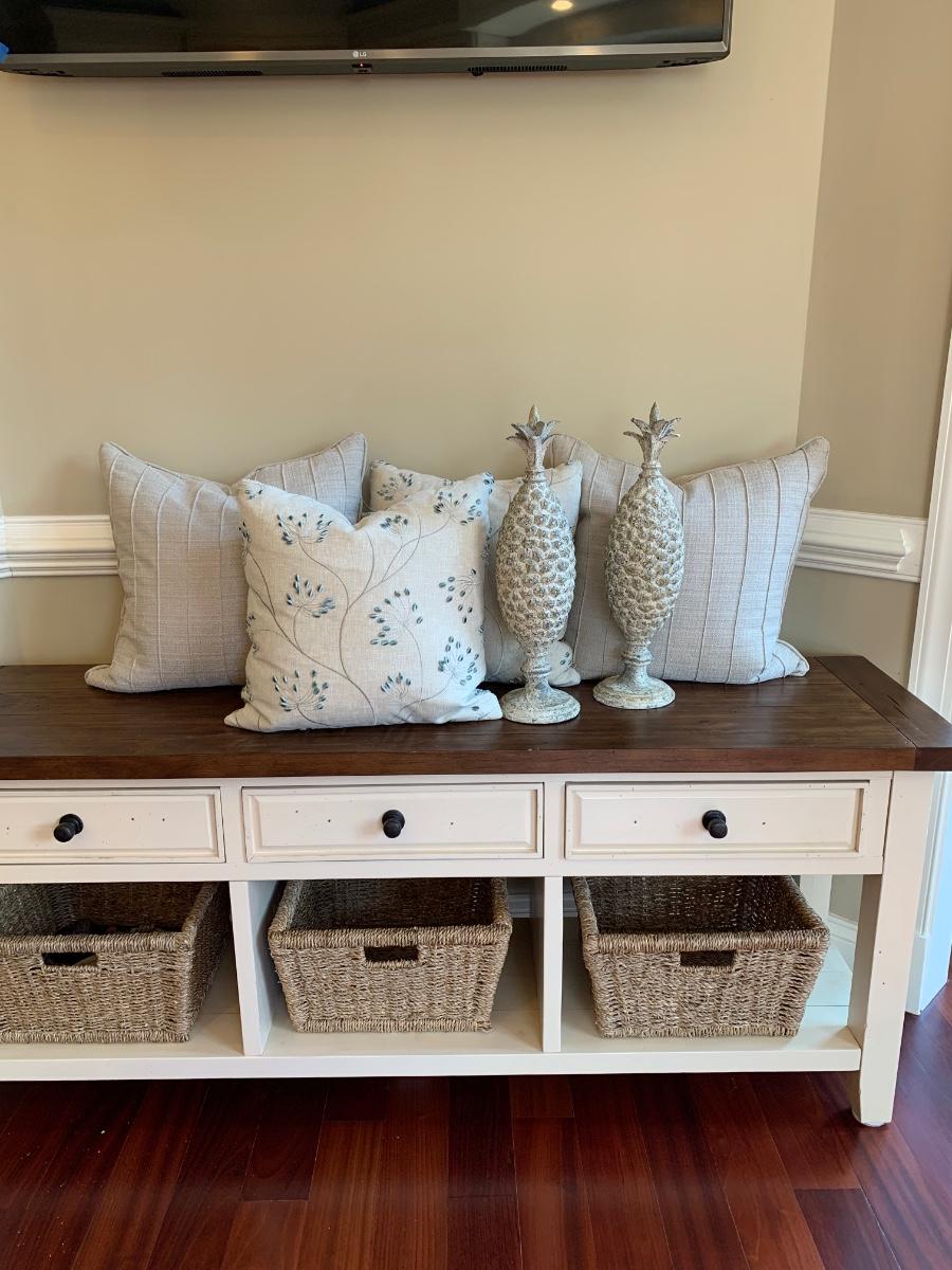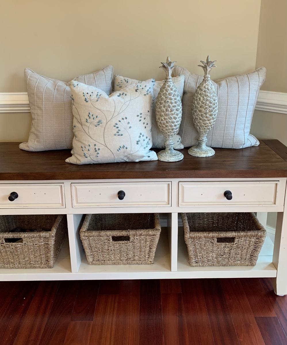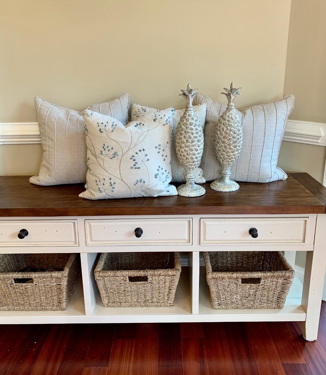 LOT 32R: Comfy Cozy Pillow Collection & Home Decor Antique Pineapple Finials (Bench NOT Included)