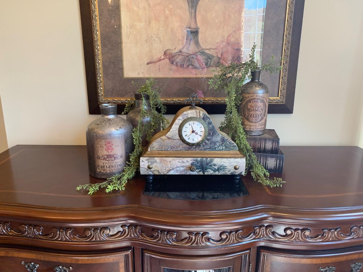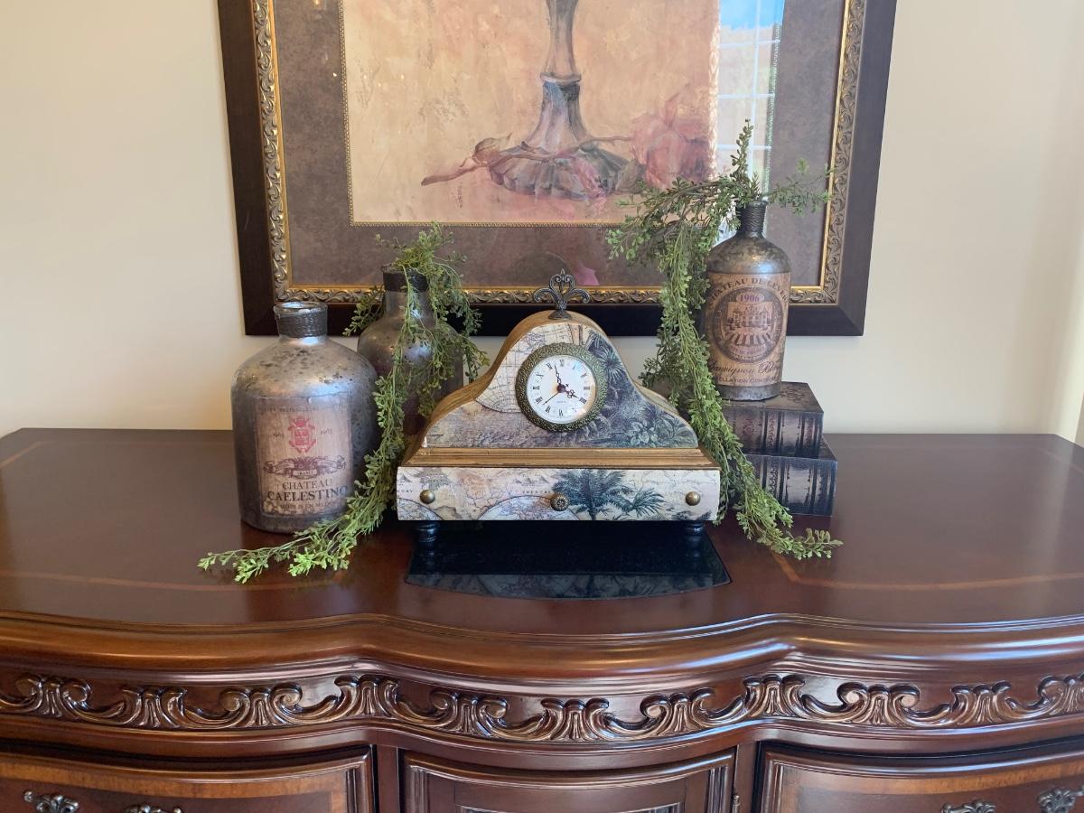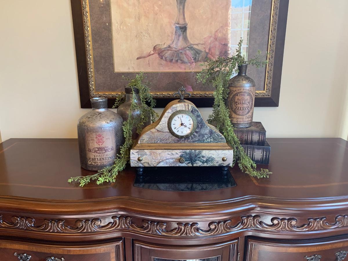 LOT 33R: Old World Home Decor: Wine Bottles, Faux Books, Clock & More