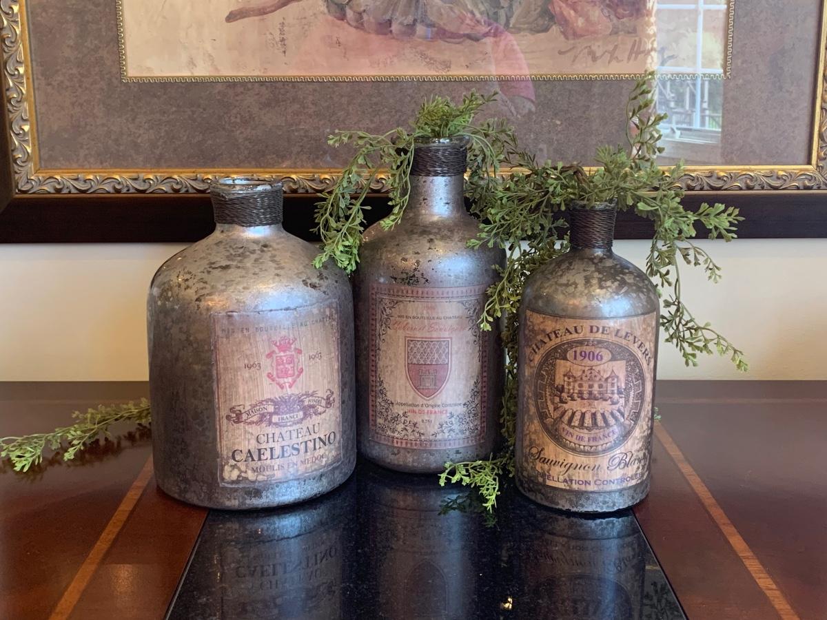 LOT 33R:  Old World Home Decor: Wine Bottles, Faux Books, Clock & More