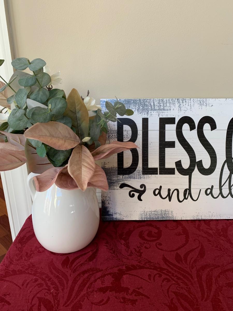 LOT 35R: "Bless Our Home" Sign, Floral Arrangements & More
