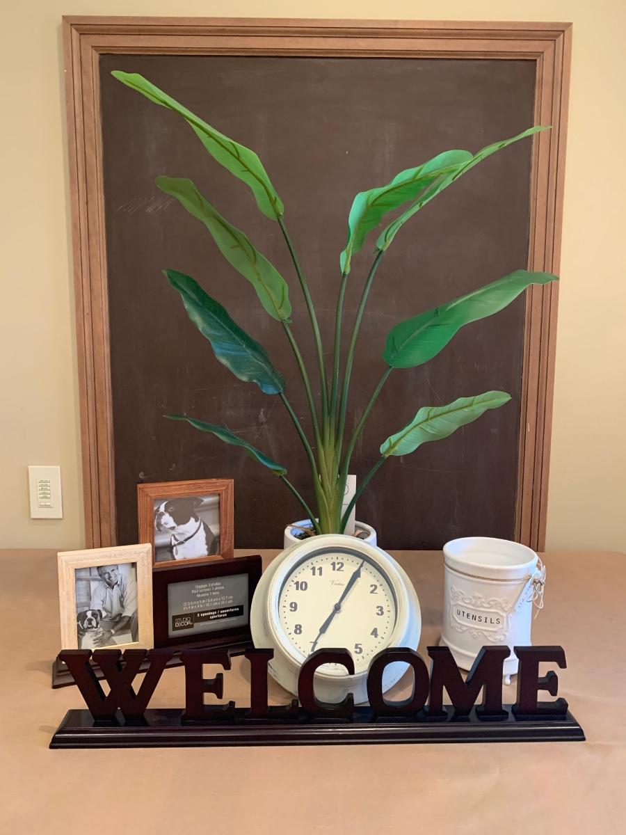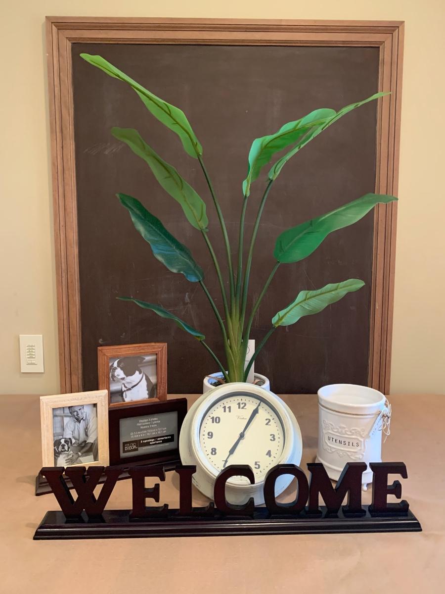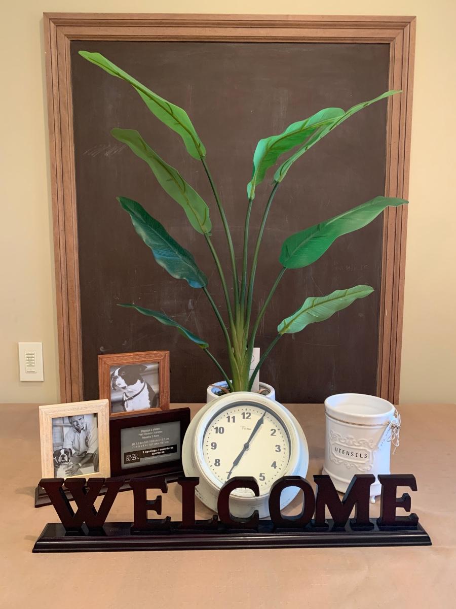 LOT46R:  "Welcome" Home Decor Collection: Clock, Sign, Picture Frame, Faux Plant & More