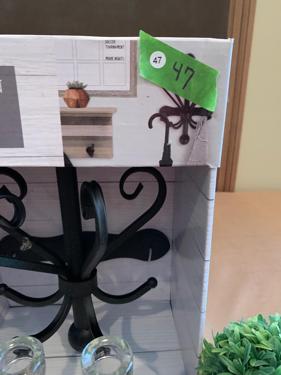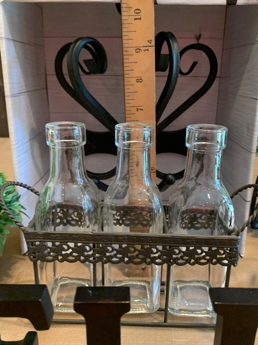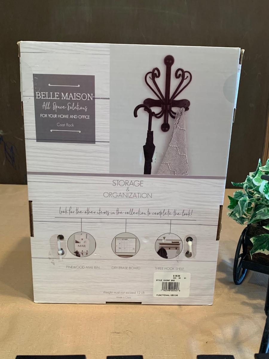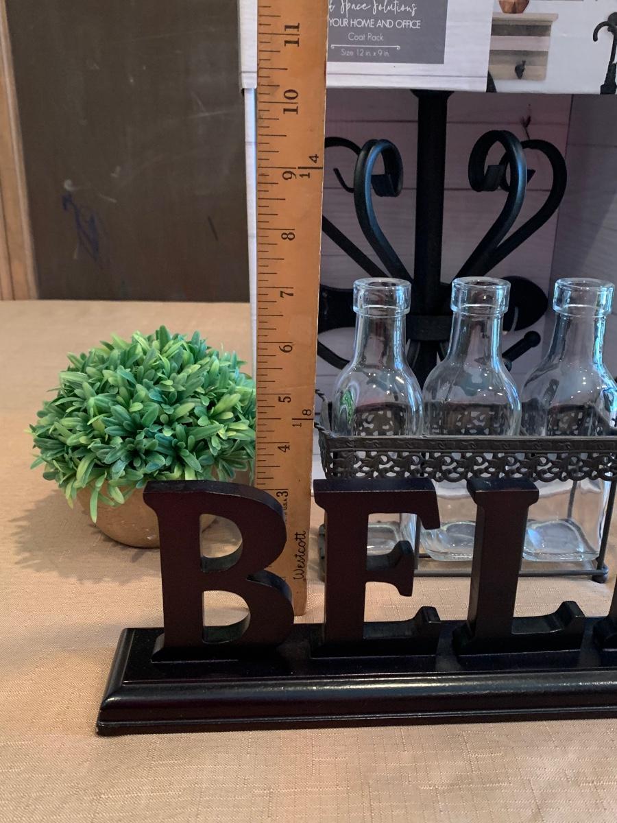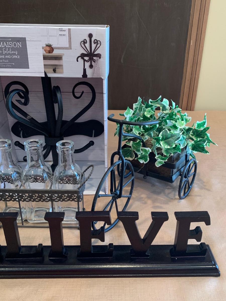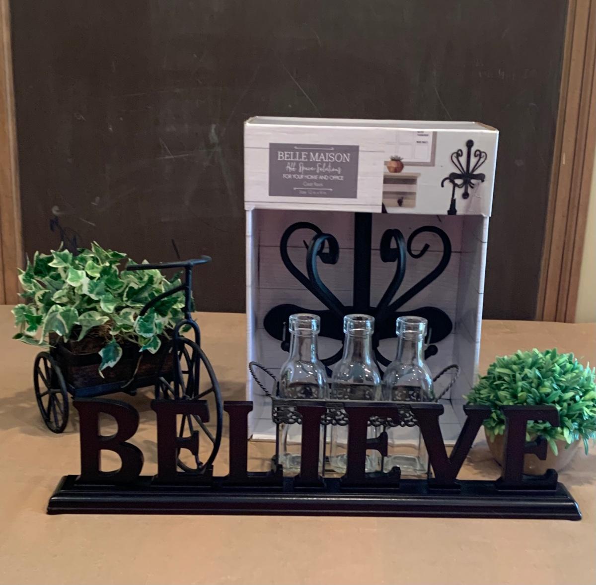 LOT 47R: "Believe" Home Decor: Belle Madison Hanging Coat Rack, Faux Plants, Bottle Vases w/Metal Tray