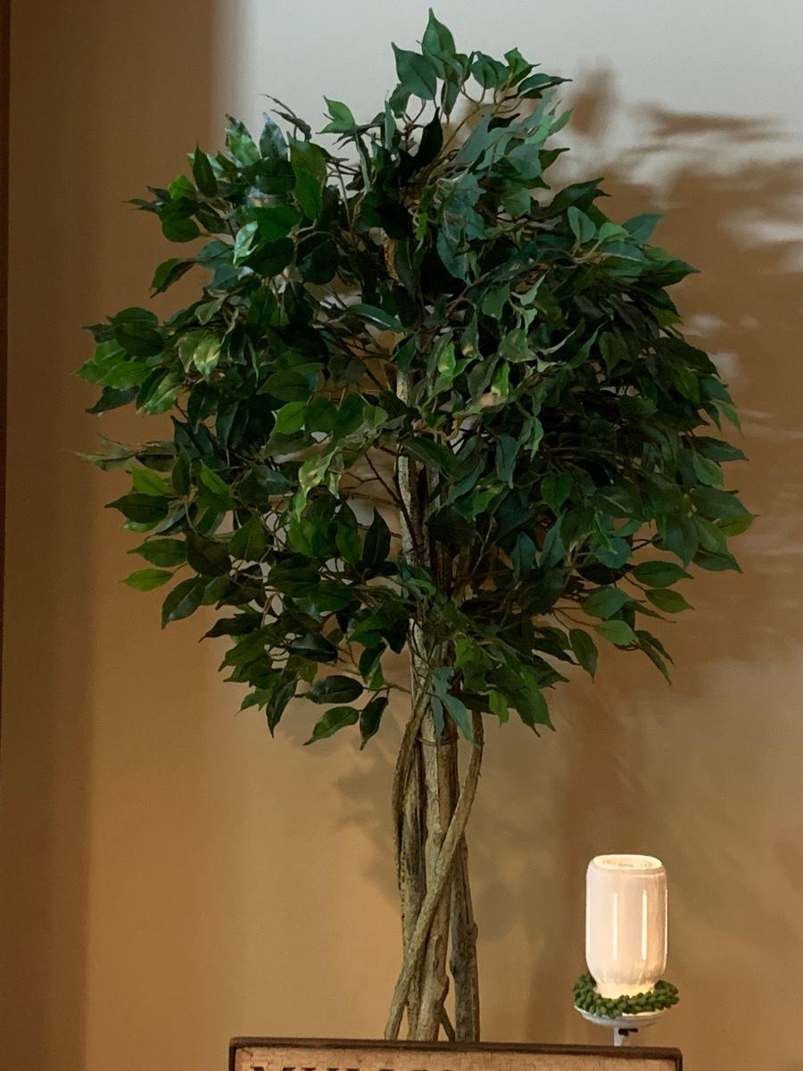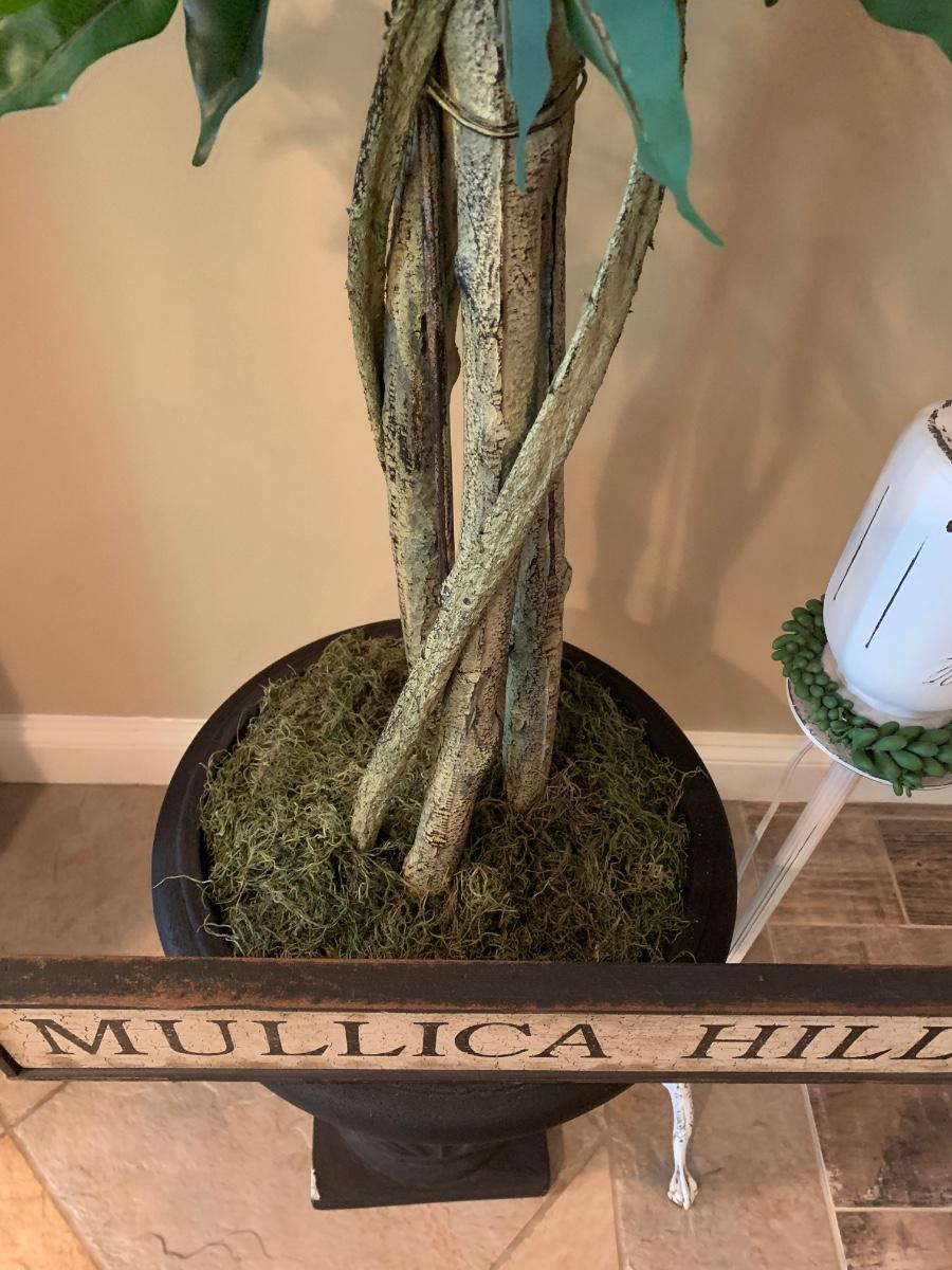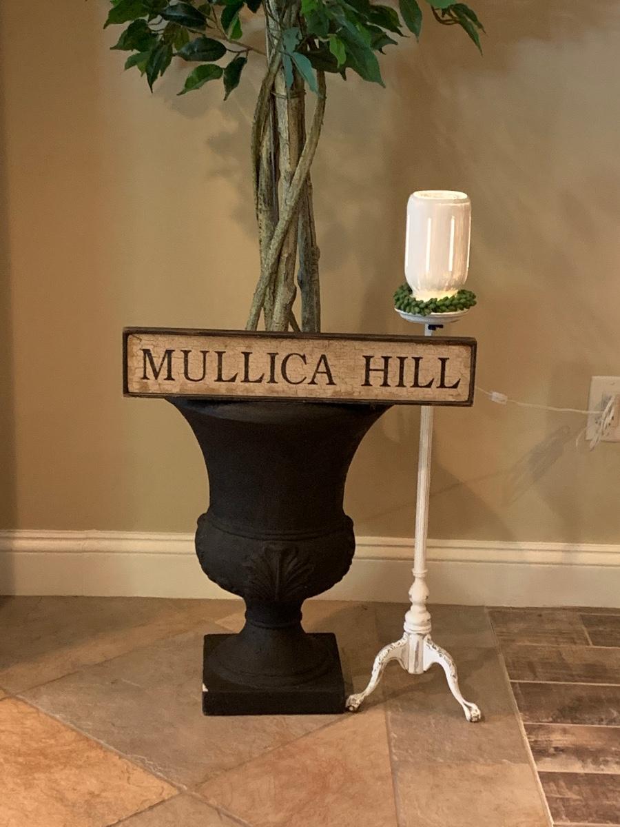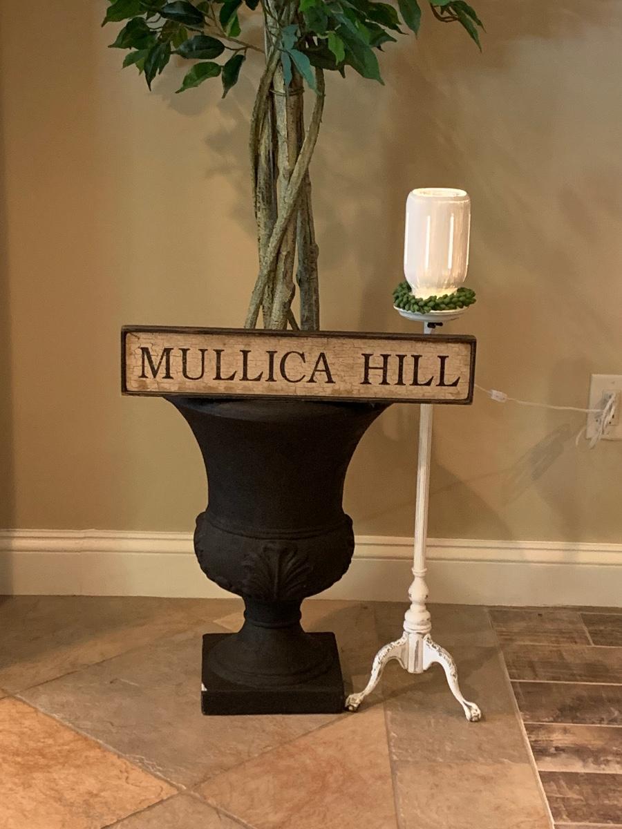 LOT 49R: Faux Tree, Mason Jar Accent Light & Wooden Mullica Hill Sign