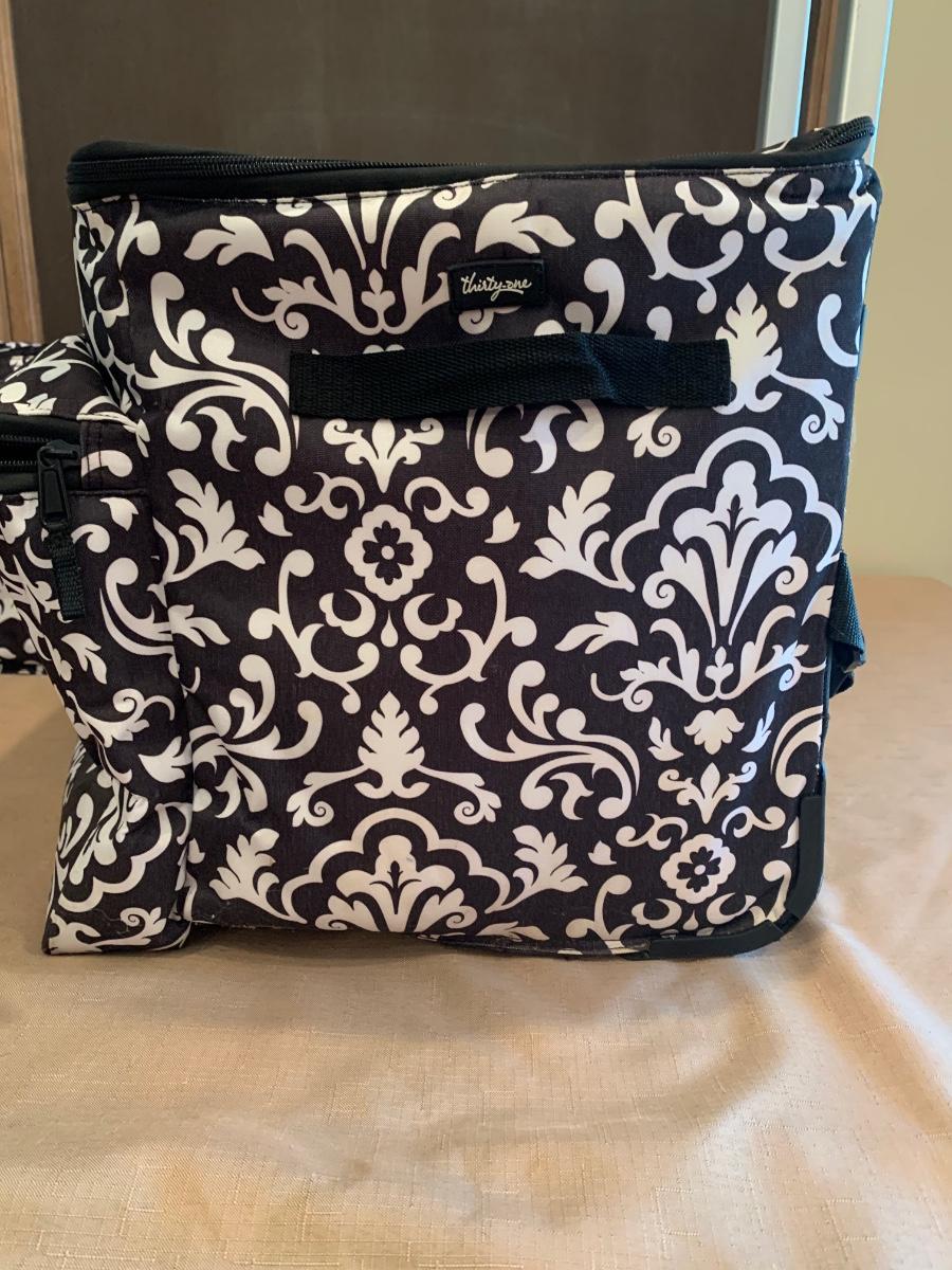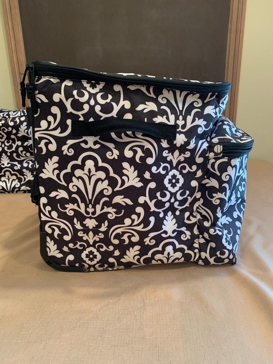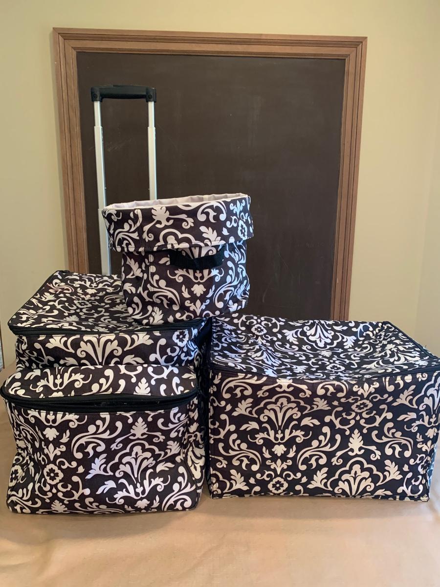 LOT 52R: Thirty One Rolling Cooler, Thirty One Round Storage Bin, Thirty One Square Thermal Tote
