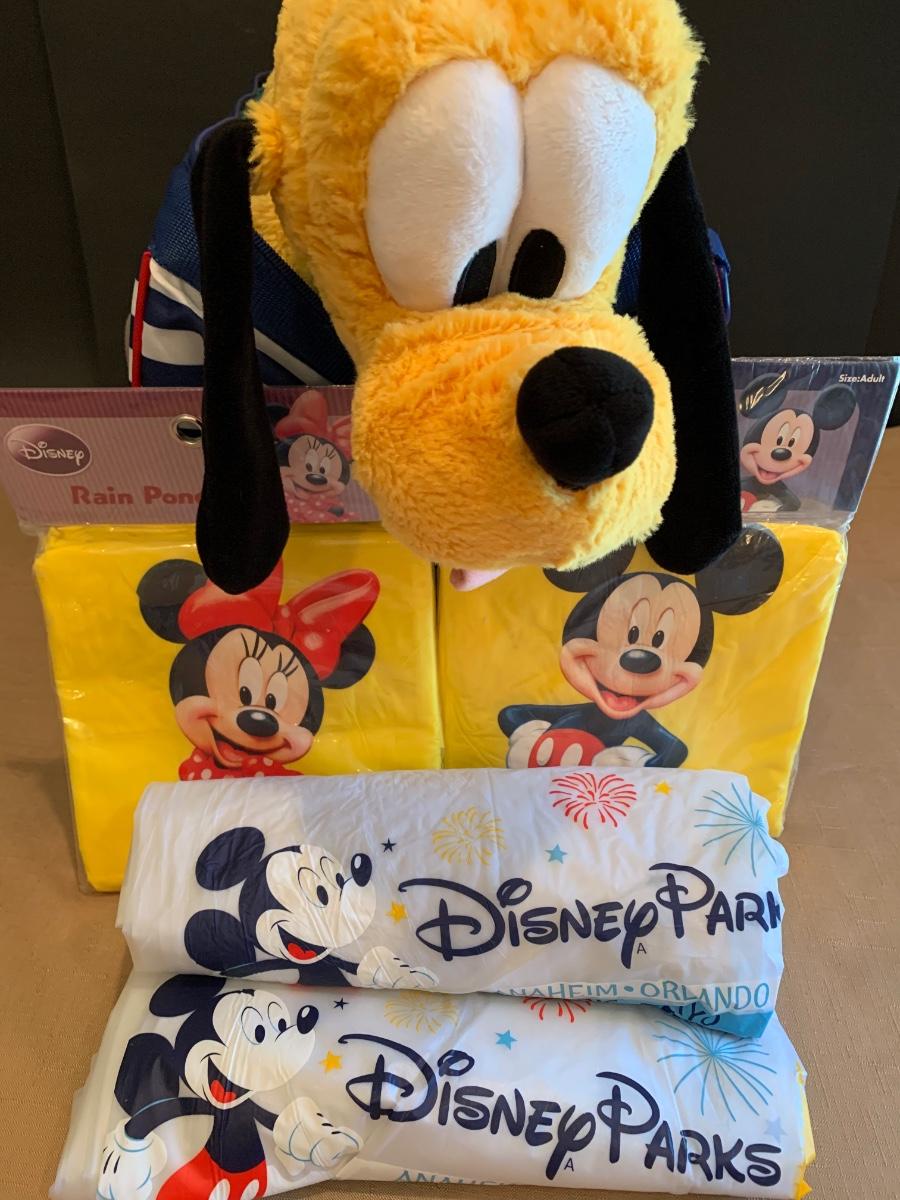 LOT 54: Disney Collection: Snowglobes, Rain Ponchos, Wallet, Scarves