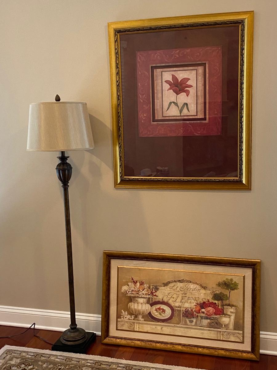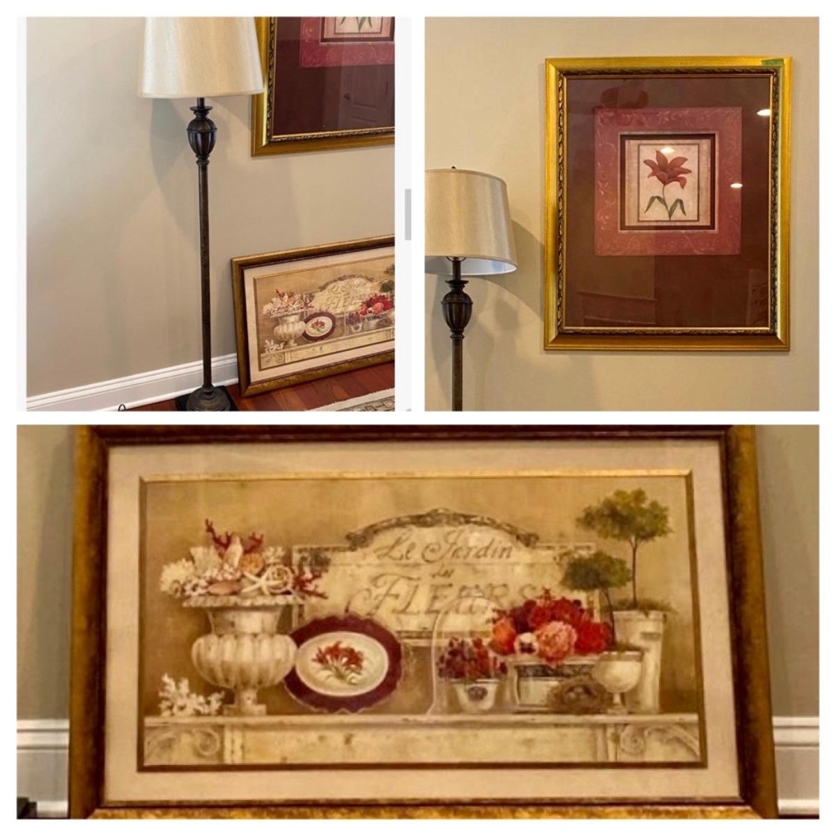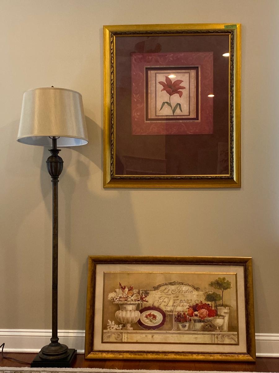 63” Floor lamp, 34x40 floral print and. 40x24 topiary print. Please see all pictures as they are the best representation of the items. The pictures show condition, measurements if taken, and what is included in the lot. Due to the large amount that we photograph and the time frame, we are not always able to take measurements. All items unless noted, are pre-owned and have been used. If you purchased furniture, you must bring help. We do not allow one person to carry large furniture out on their own. Bring help, tools and a truck for the safety of our client’s homes, and your personal safety. Any damages that result to the property including walls, and floors due to moving of the furniture will be charged to the buyer. Company policy. Thank you.