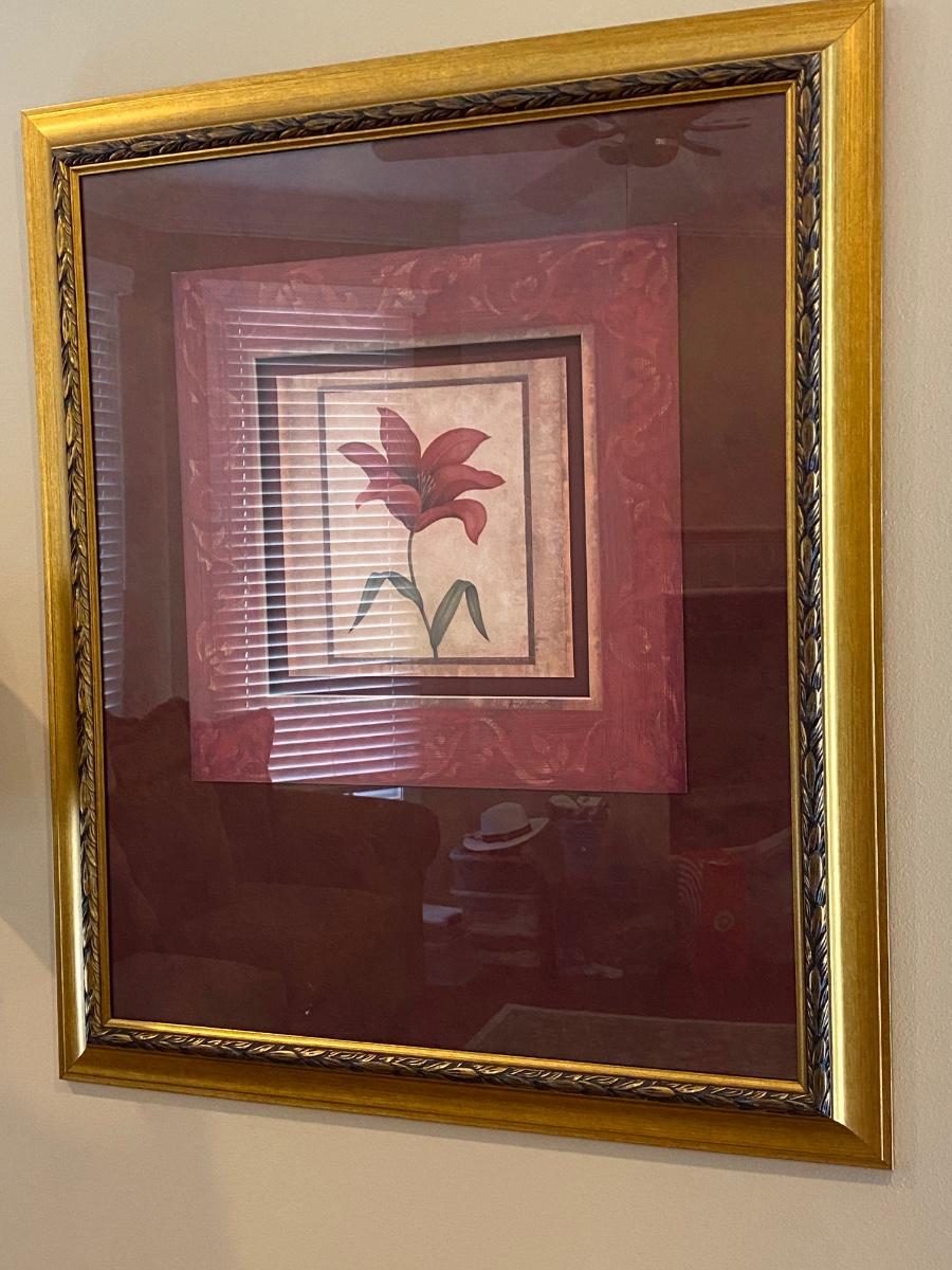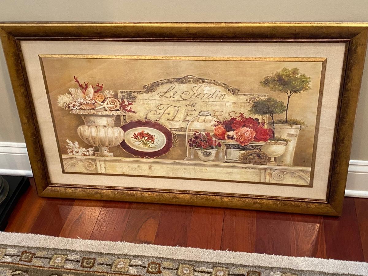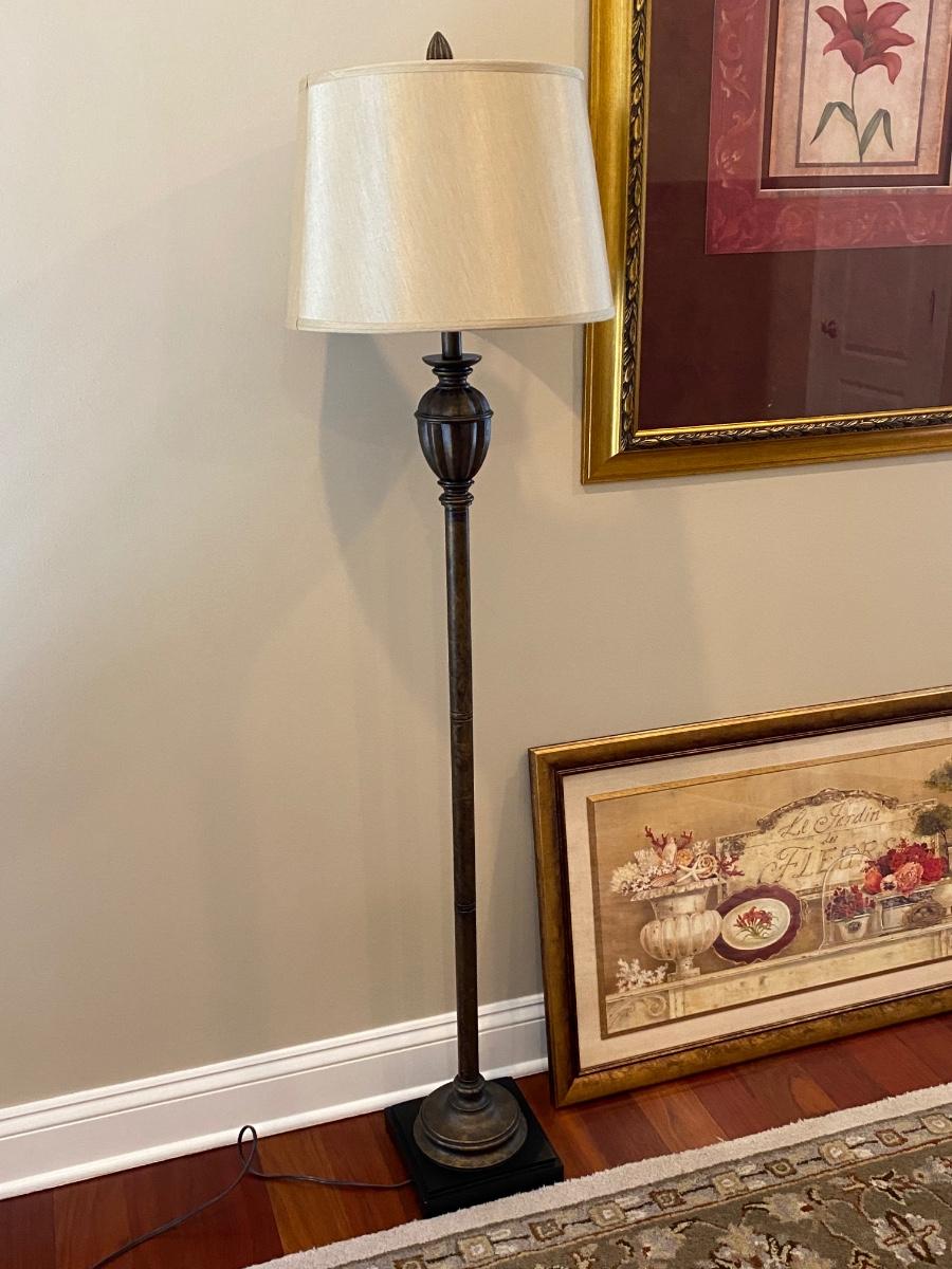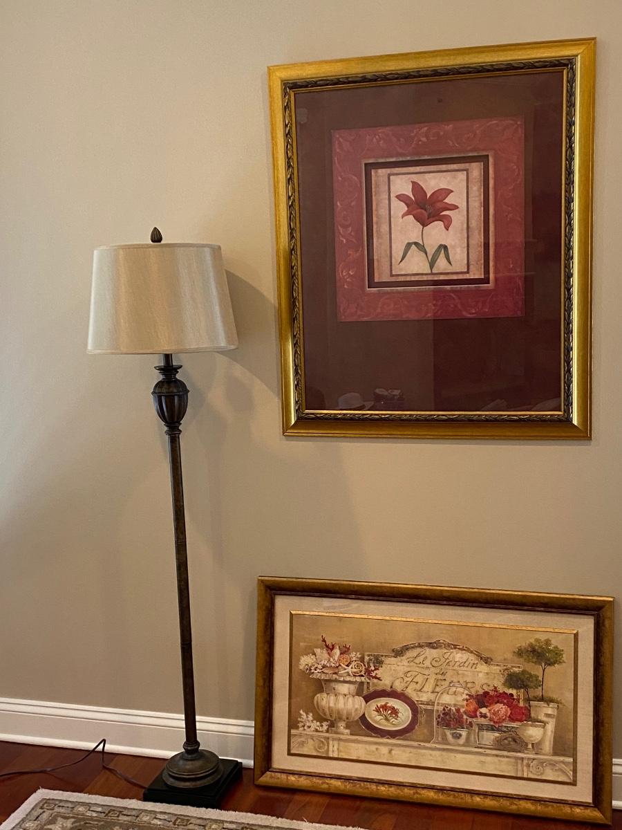 63” Floor lamp, 34x40 floral print and. 40x24 topiary print. Please see all pictures as they are the best representation of the items. The pictures show condition, measurements if taken, and what is included in the lot. Due to the large amount that we photograph and the time frame, we are not always able to take measurements. All items unless noted, are pre-owned and have been used. If you purchased furniture, you must bring help. We do not allow one person to carry large furniture out on their own. Bring help, tools and a truck for the safety of our client’s homes, and your personal safety. Any damages that result to the property including walls, and floors due to moving of the furniture will be charged to the buyer. Company policy. Thank you.
