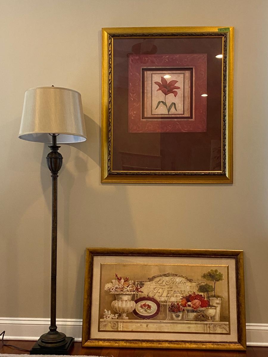 LOT 65C:Framed Floral & Topiary Prints & Floor Lamp