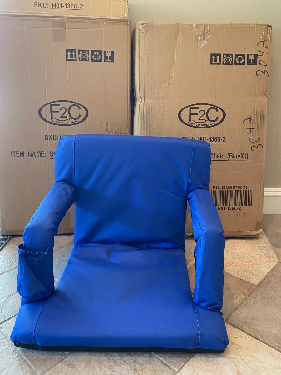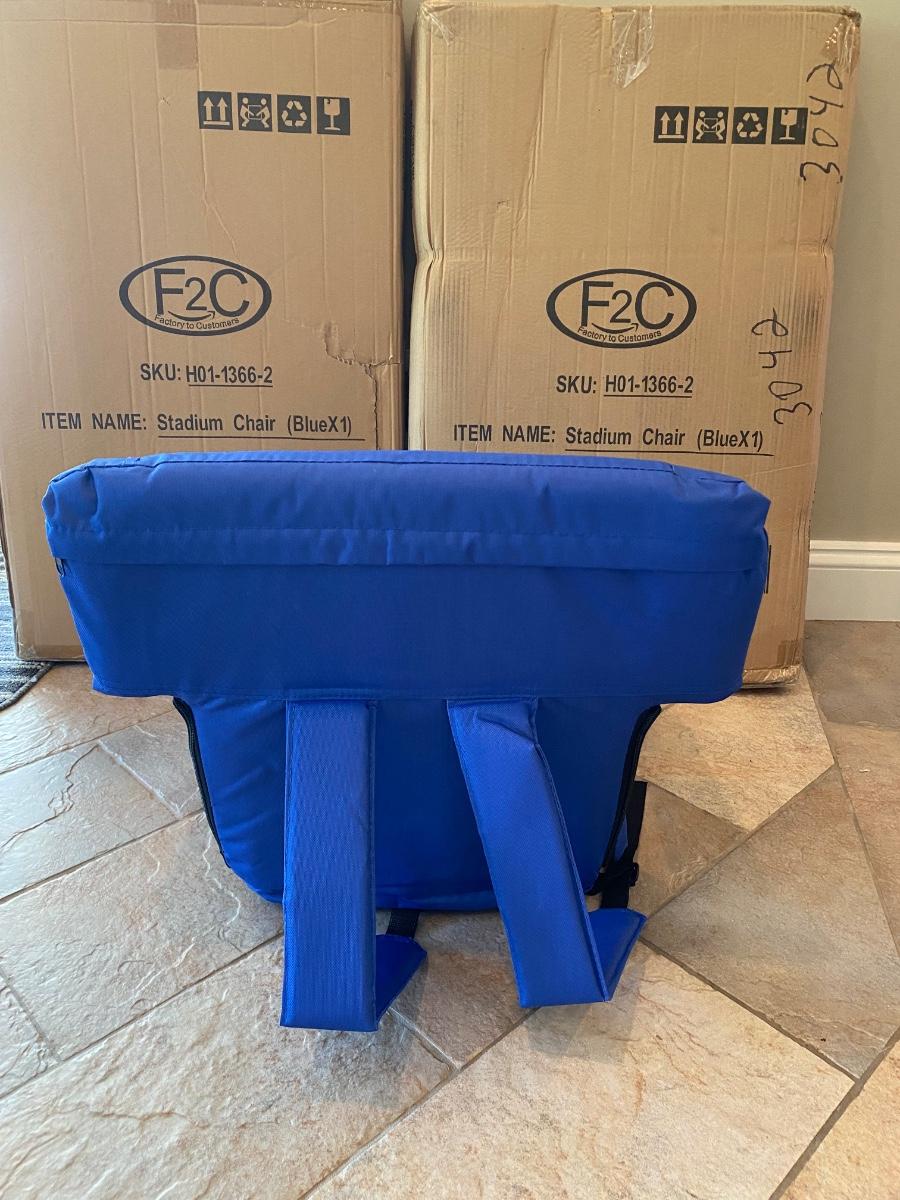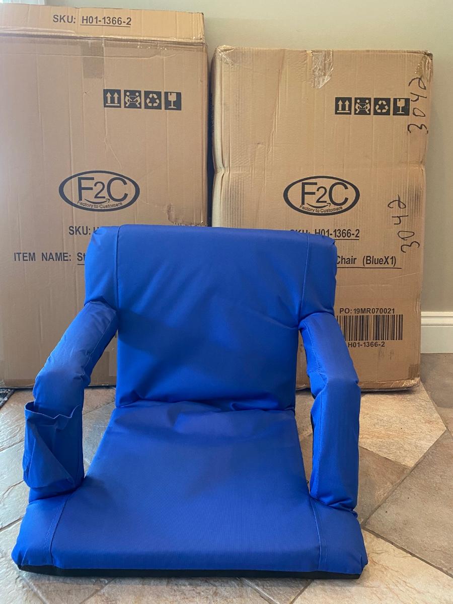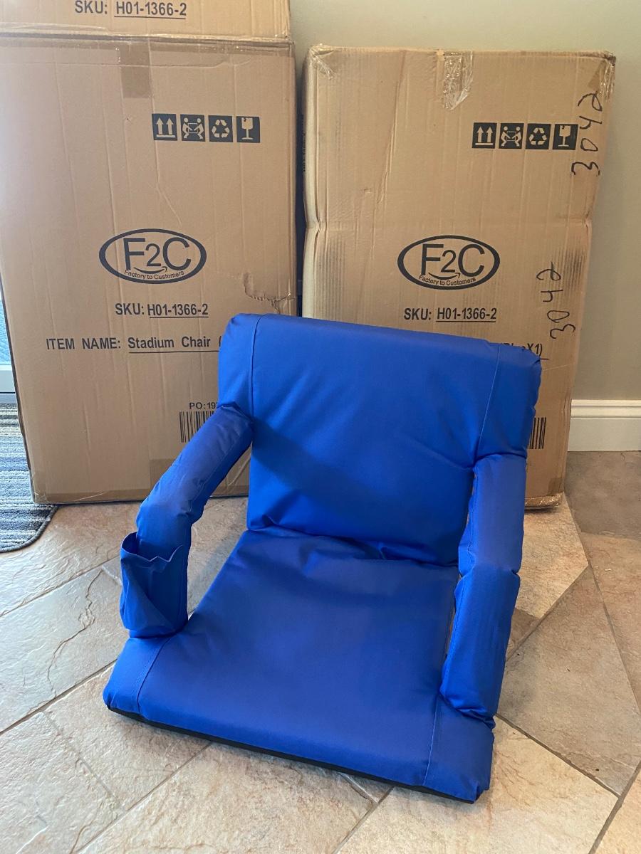 Pair of two stadium chairs. One chair is new in unopened box. Chairs are lightweight and sit on bleachers for comfort. Please see all pictures as they are the best representation of the items. The pictures show condition, measurements if taken, and what is included in the lot. Due to the large amount that we photograph and the time frame, we are not always able to take measurements. All items unless noted, are pre-owned and have been used. If you purchased furniture, you must bring help. We do not allow one person to carry large furniture out on their own. Bring help, tools and a truck for the safety of our client’s homes, and your personal safety. Any damages that result to the property including walls, and floors due to moving of the furniture will be charged to the buyer. Company policy. Thank you.
