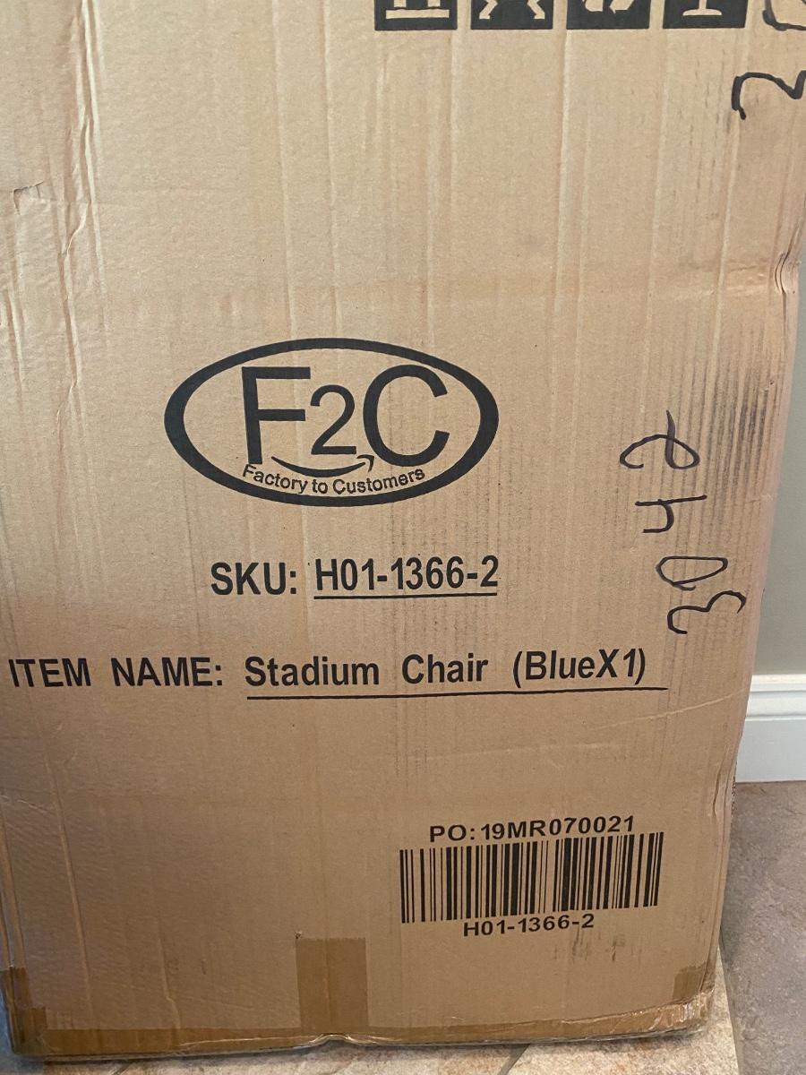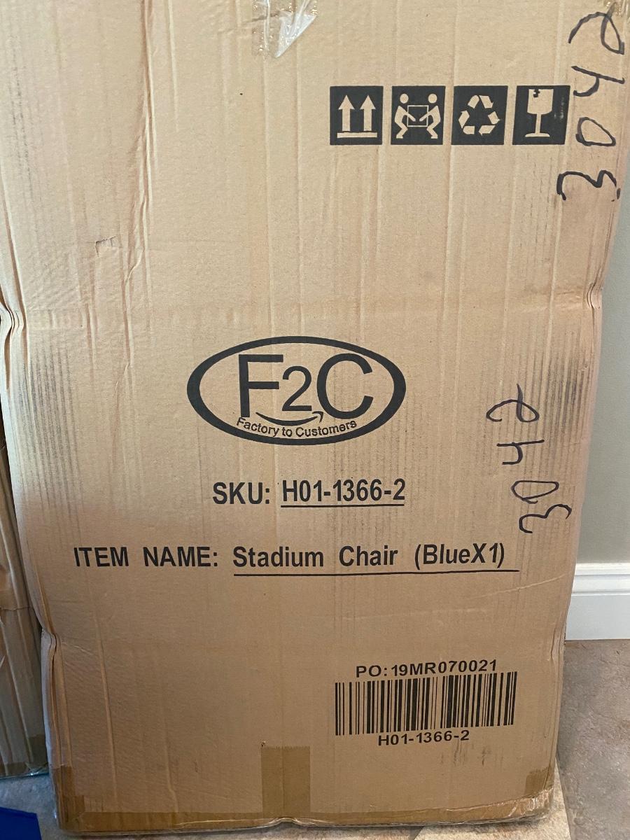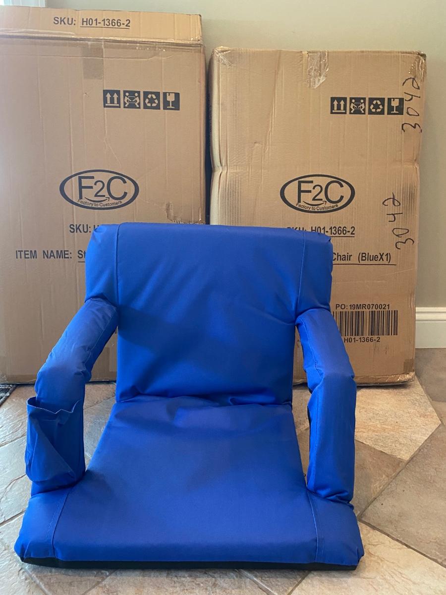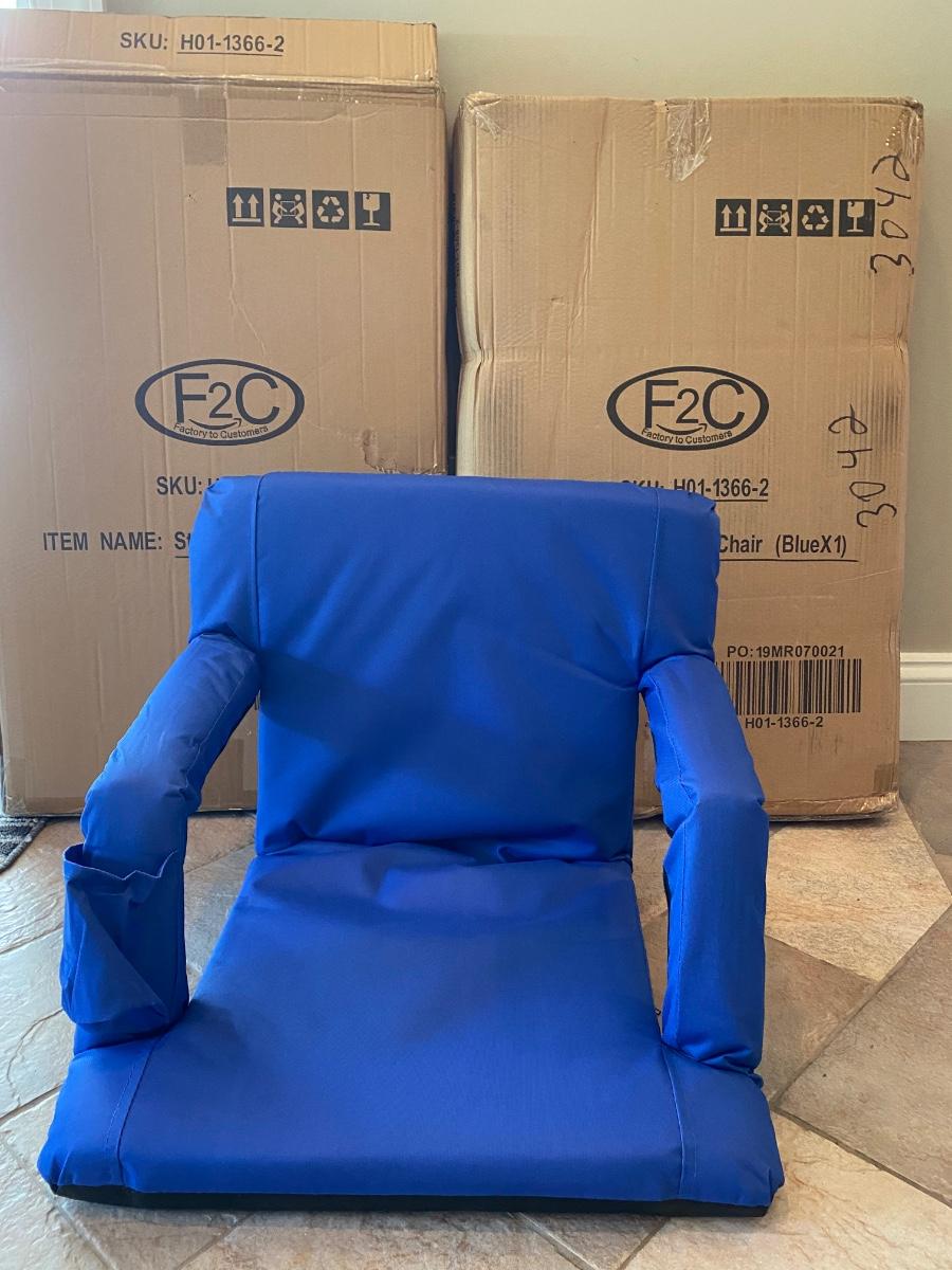 Pair of two stadium chairs. One chair is new in unopened box. Chairs are lightweight and sit on bleachers for comfort. Please see all pictures as they are the best representation of the items. The pictures show condition, measurements if taken, and what is included in the lot. Due to the large amount that we photograph and the time frame, we are not always able to take measurements. All items unless noted, are pre-owned and have been used. If you purchased furniture, you must bring help. We do not allow one person to carry large furniture out on their own. Bring help, tools and a truck for the safety of our client’s homes, and your personal safety. Any damages that result to the property including walls, and floors due to moving of the furniture will be charged to the buyer. Company policy. Thank you.