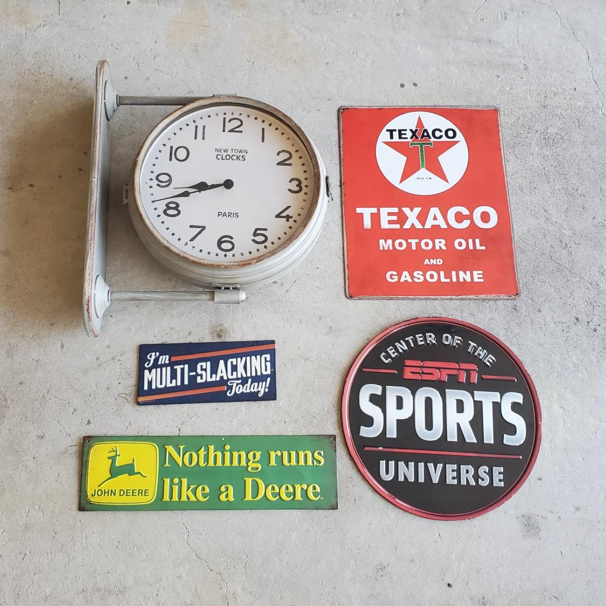 LOT 101G: Home Decor Advertising Signs & Garage Clock