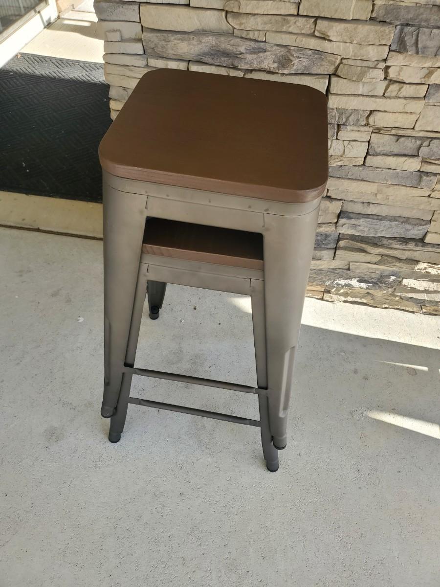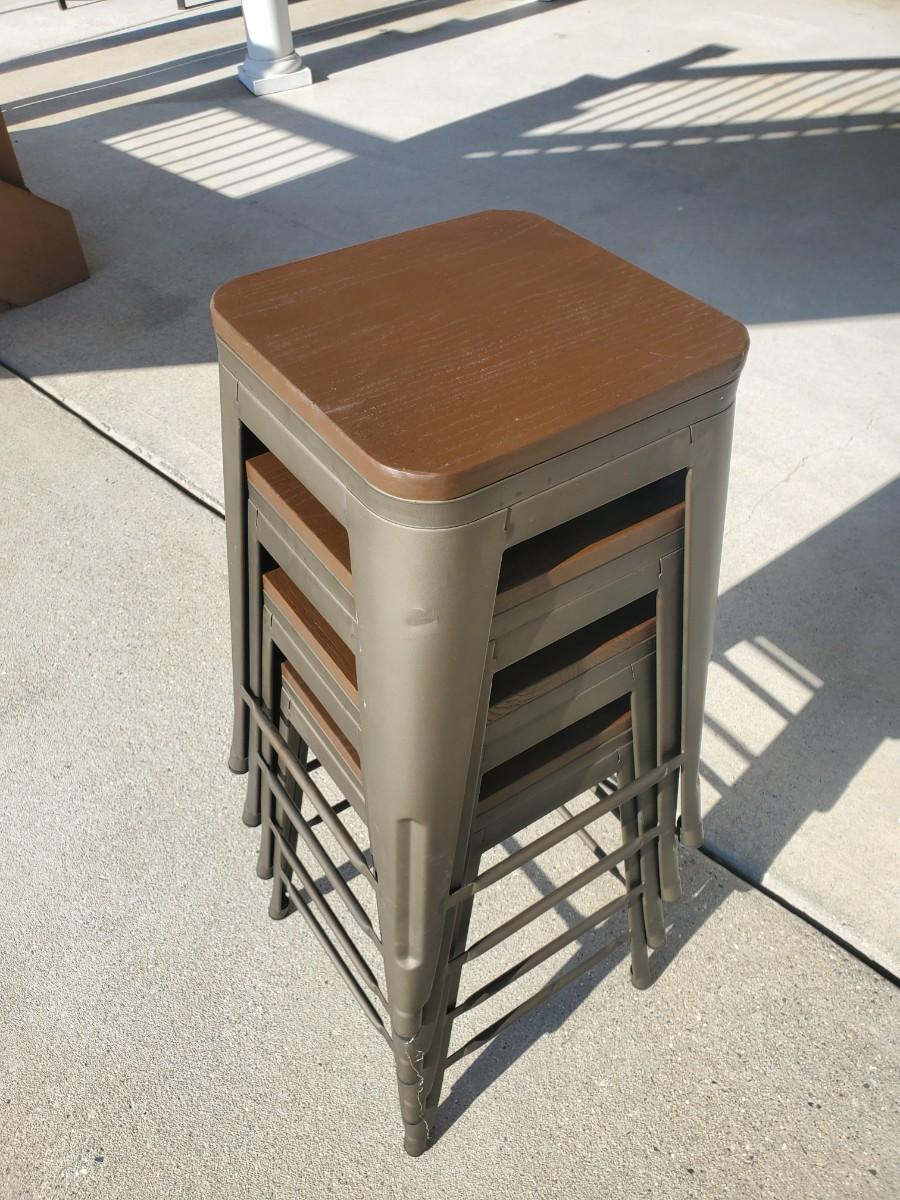 LOT 108G: Wood & Metal Stackable Kitchen/Bar Stools (Set of 4)