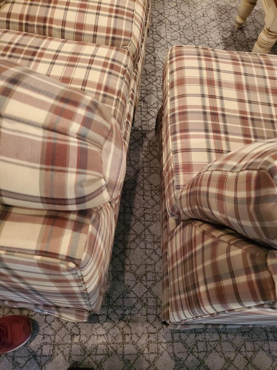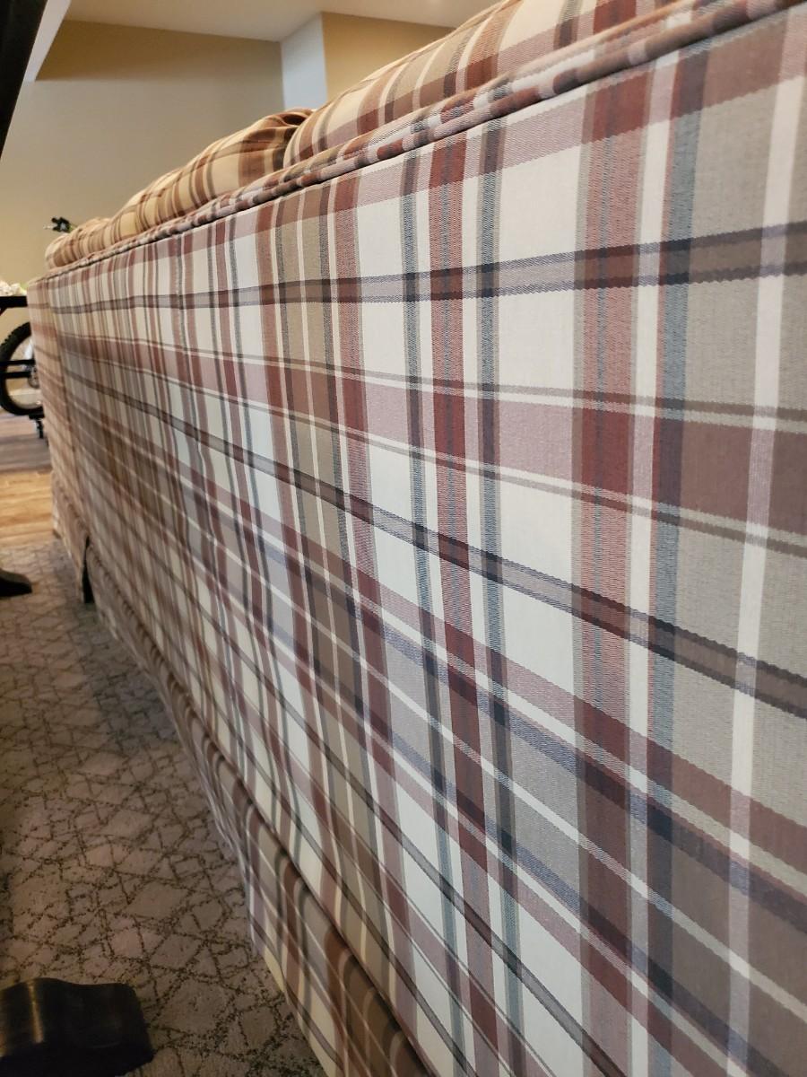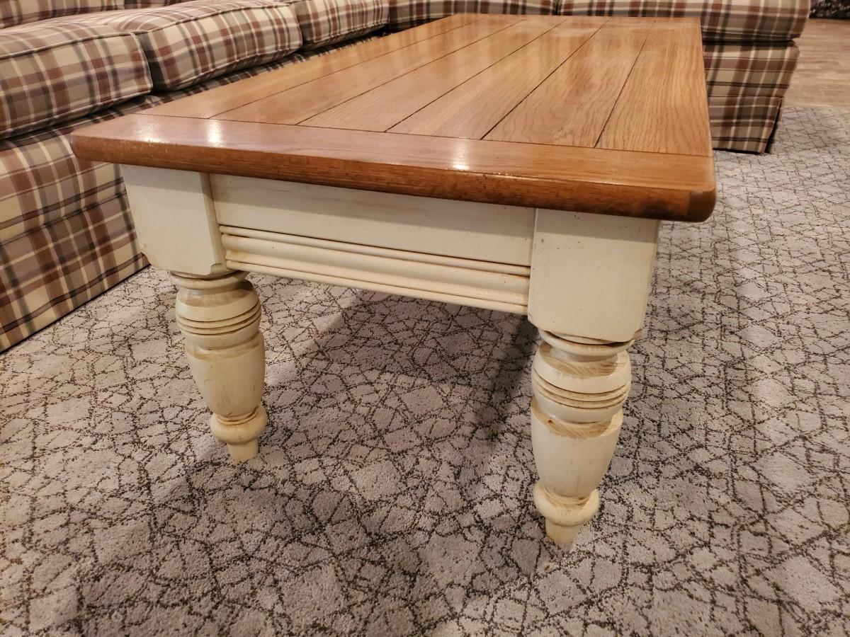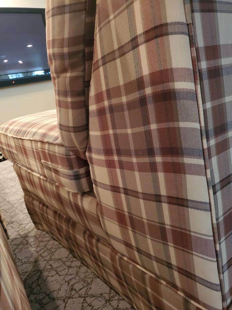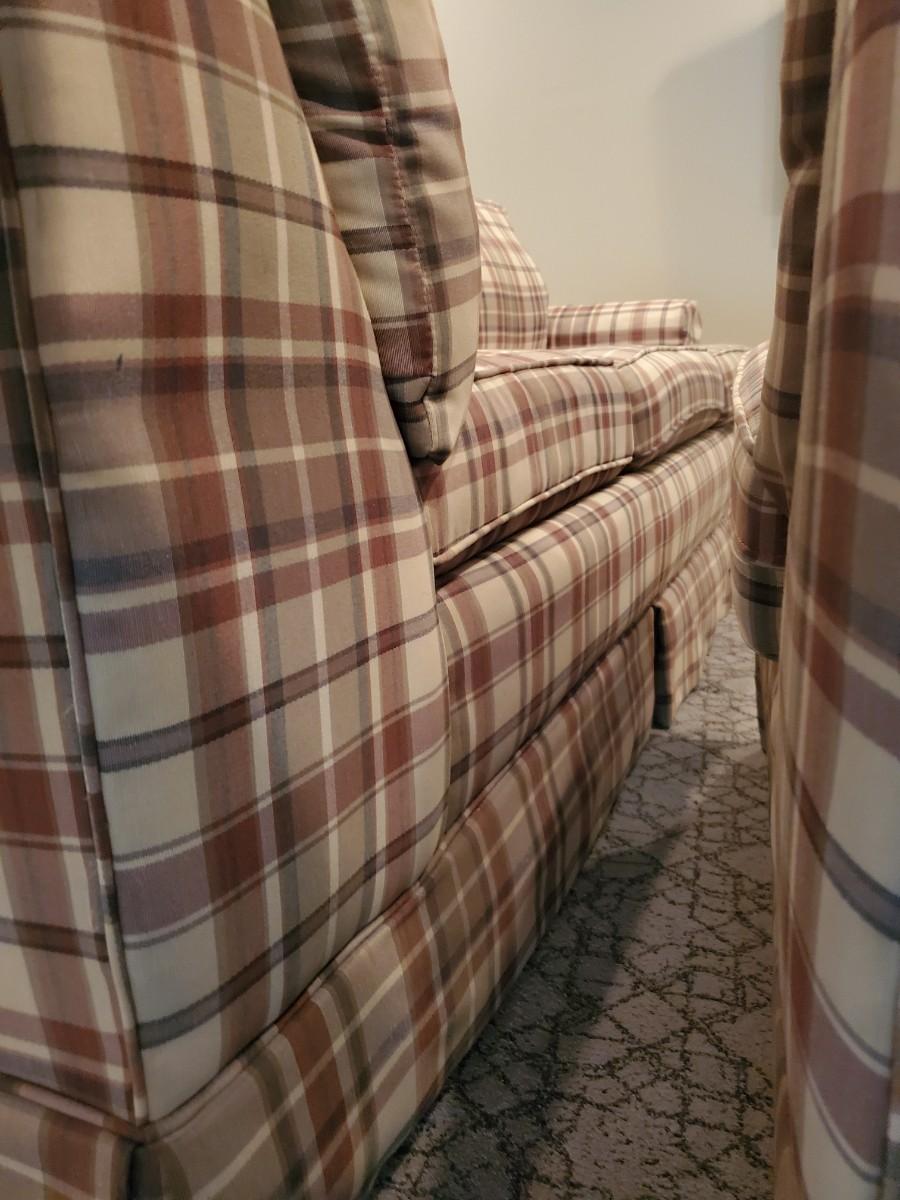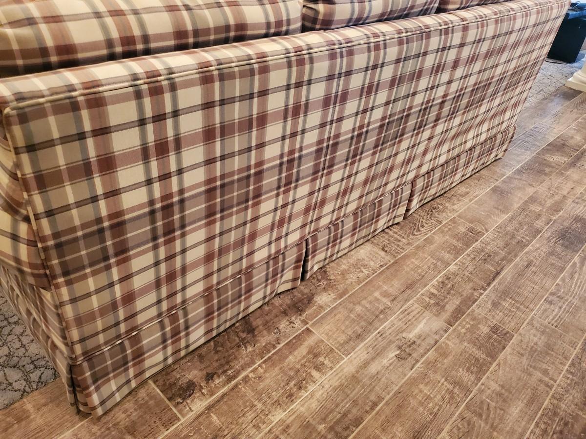 LOT 110G: Plaid Section Couch & Farm House Coffee Table - Great Family/Children's Room Piece