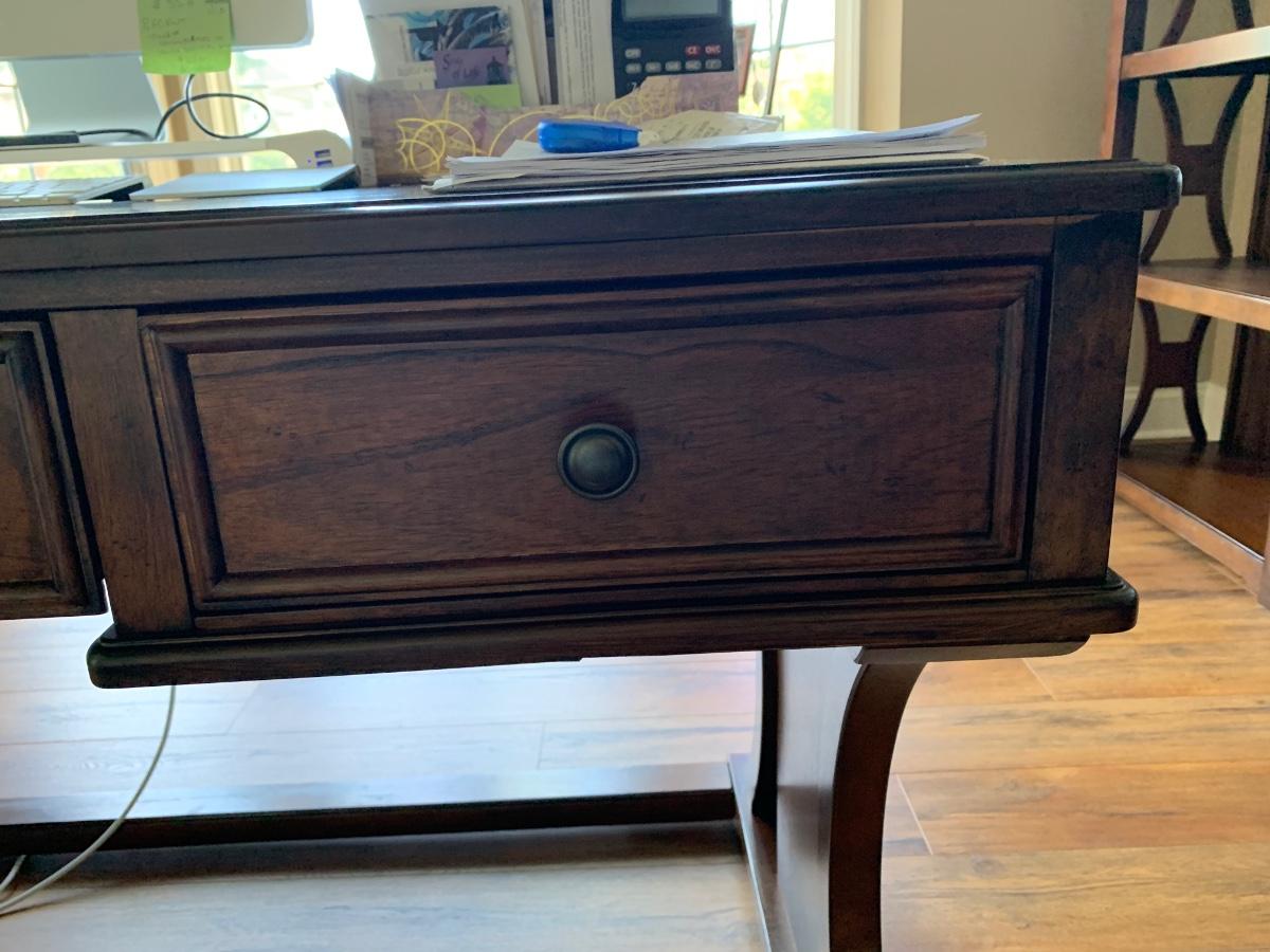 LOT 124G: Beautiful Wood Office Desk w/ Dark Finish (Desk ONLY)
