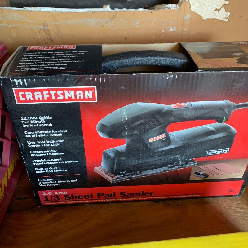 Lot 767 craftsman 1/3 sheet pad sander still in box and miter box kit