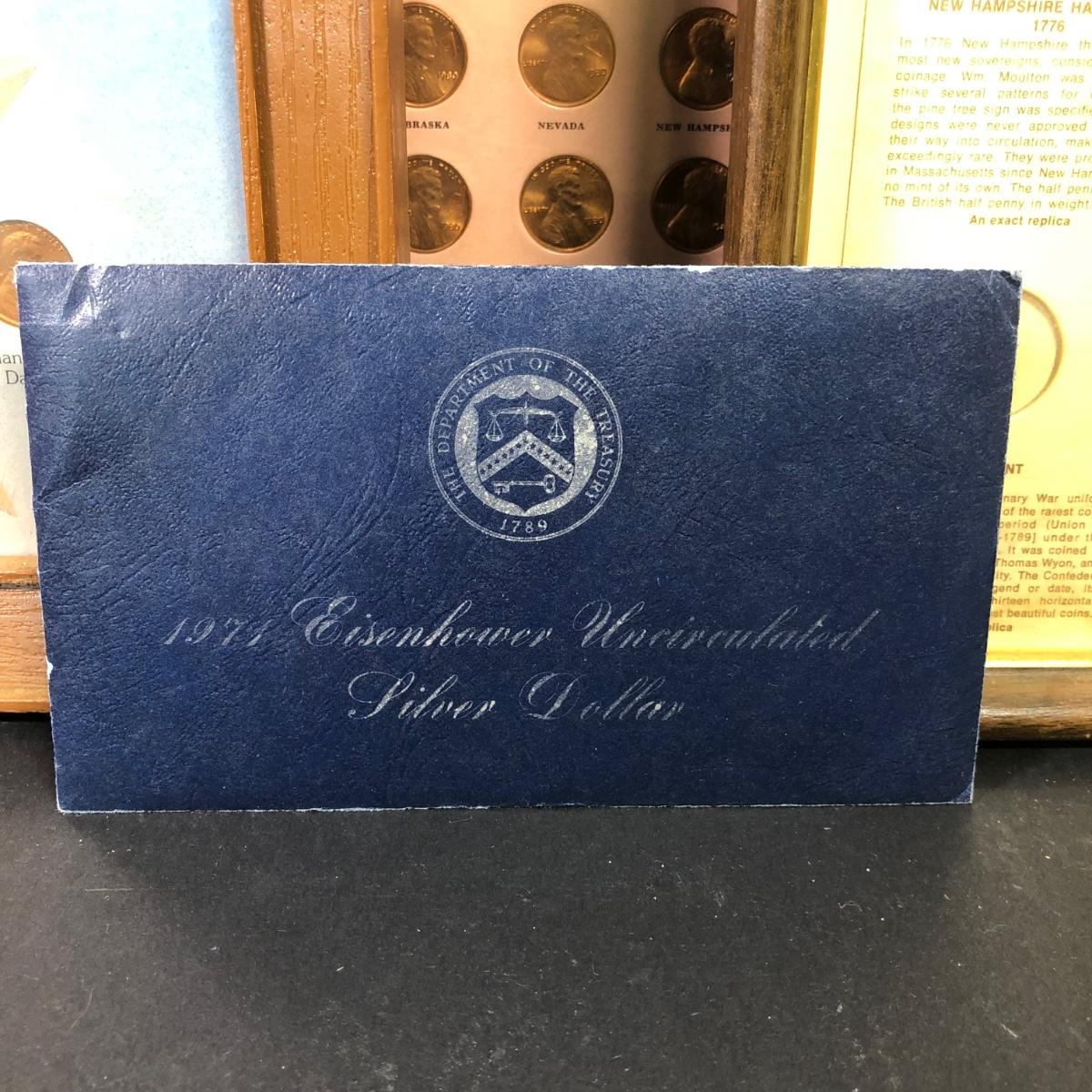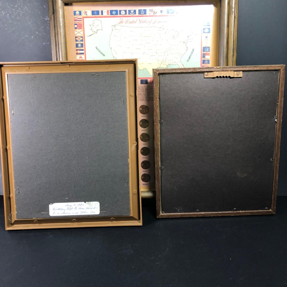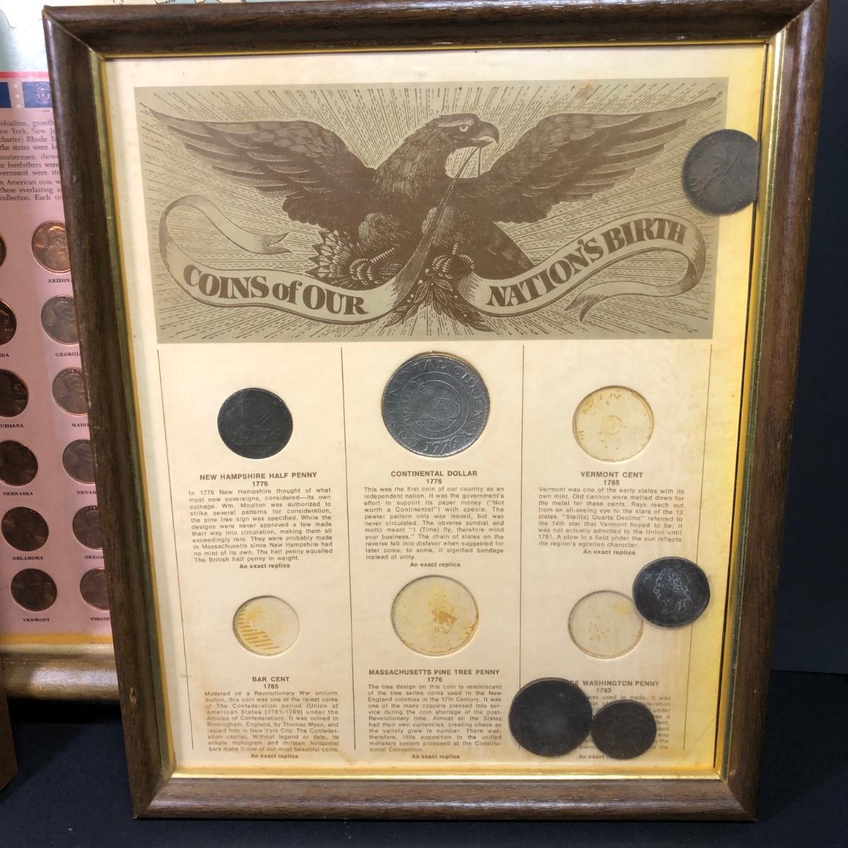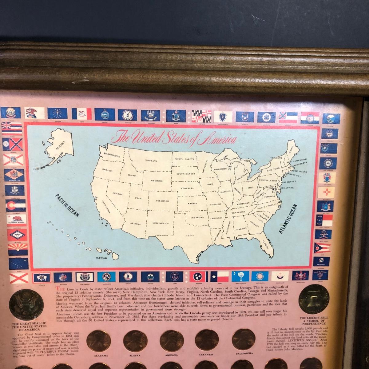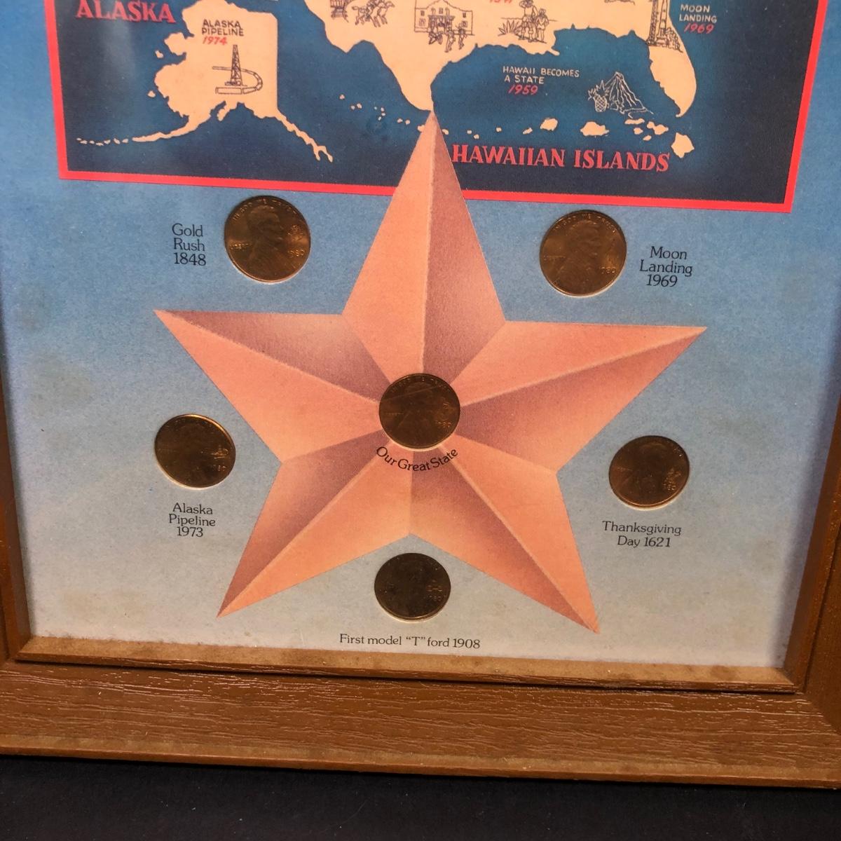 LOT 76M: Coin Collection - Framed State Pennies, Eisenhower Half Dollar, Framed Historic Americana Penny Collection,