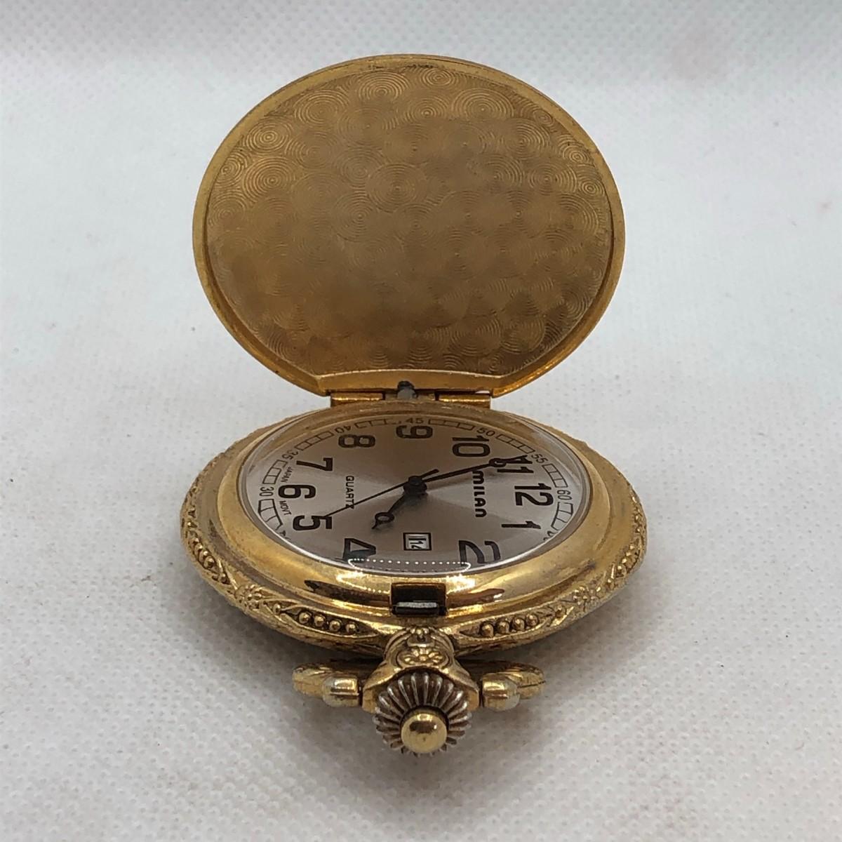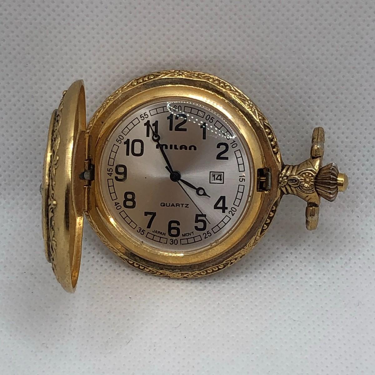 This pocket watch is in excellent condition and battery operated. I don't know if it works or not. It currently isn't working, but that could be due to a dead battery.