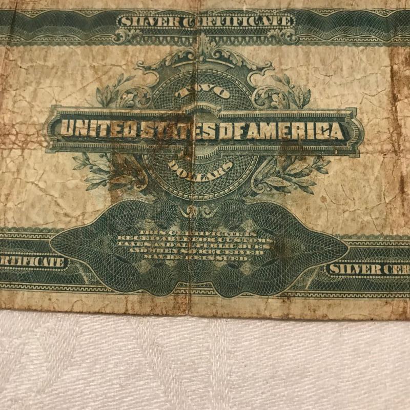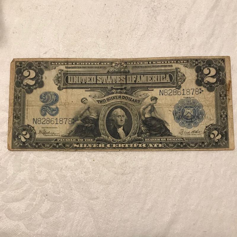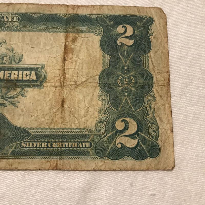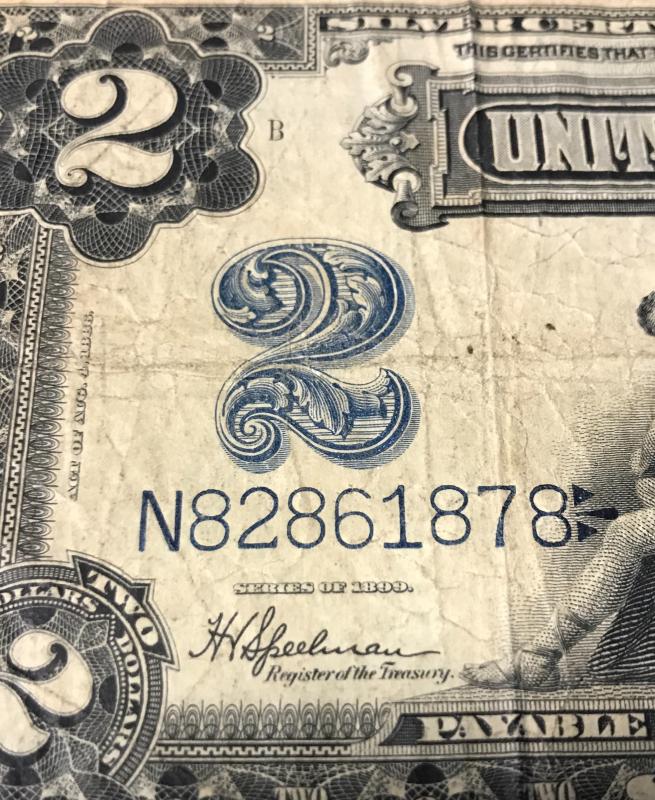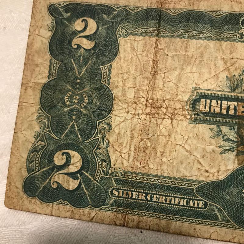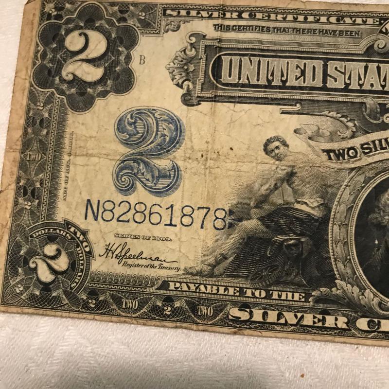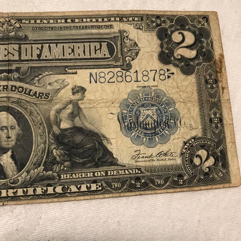 Two Dollar Bill dated 1899. This silver certificate is not in good condition. Bill sleeve is included for safe keeping. Shipping available.