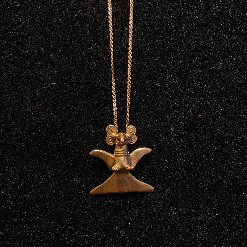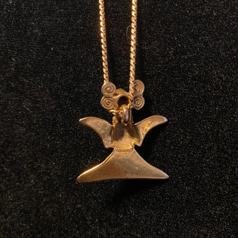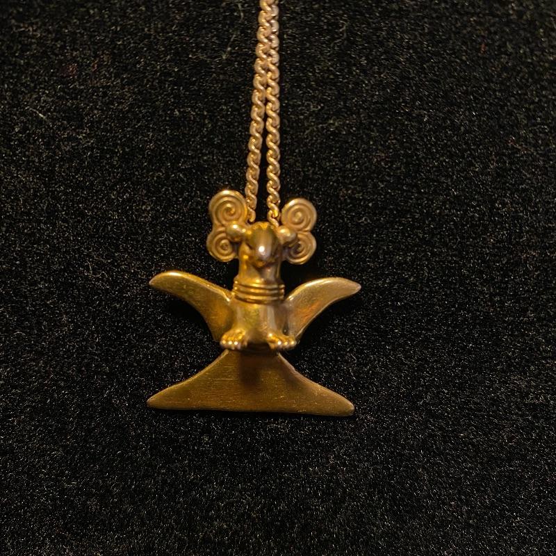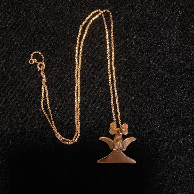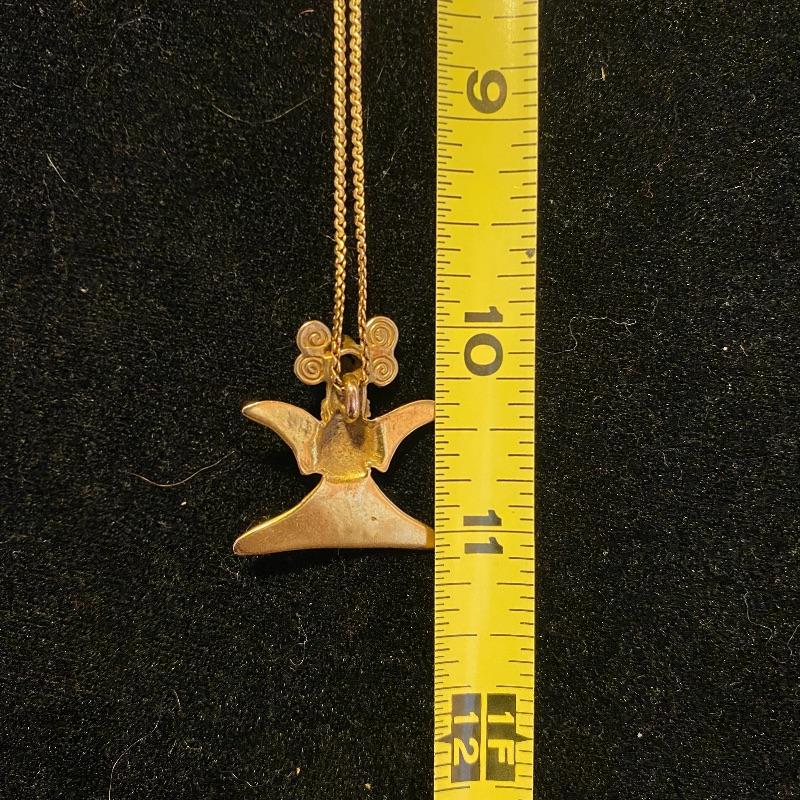 This lot contains a beautiful 10” chain marked 18k with a unique gold colored Phoenix pendant. The pendant is one inch and has no marking found. Shipping Available.
