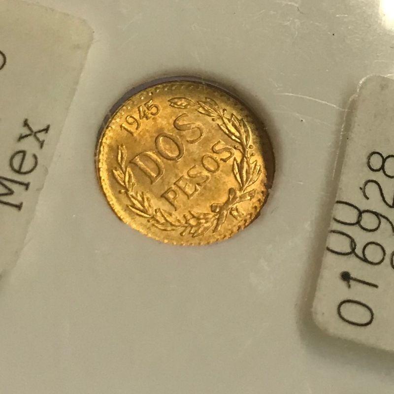 1945 2 Pesos Mexican Gold Coin. Uncirculated