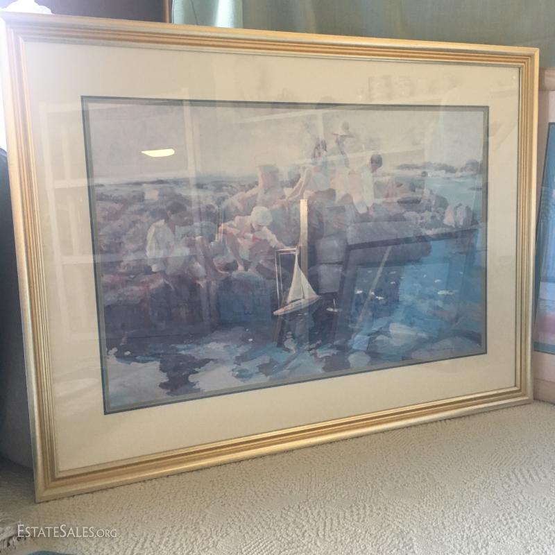 Framed children/sailboat: 63" L x 37.5" W