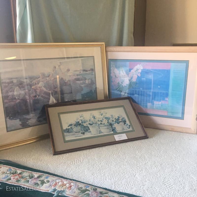 Three Framed pieces of Art. See photos for details. Colors may not convey.