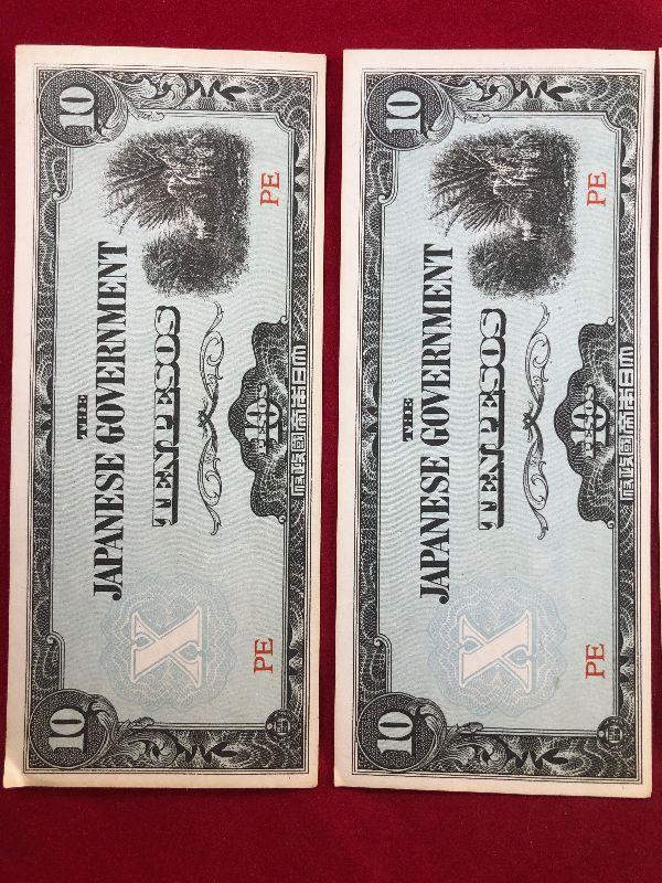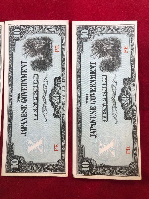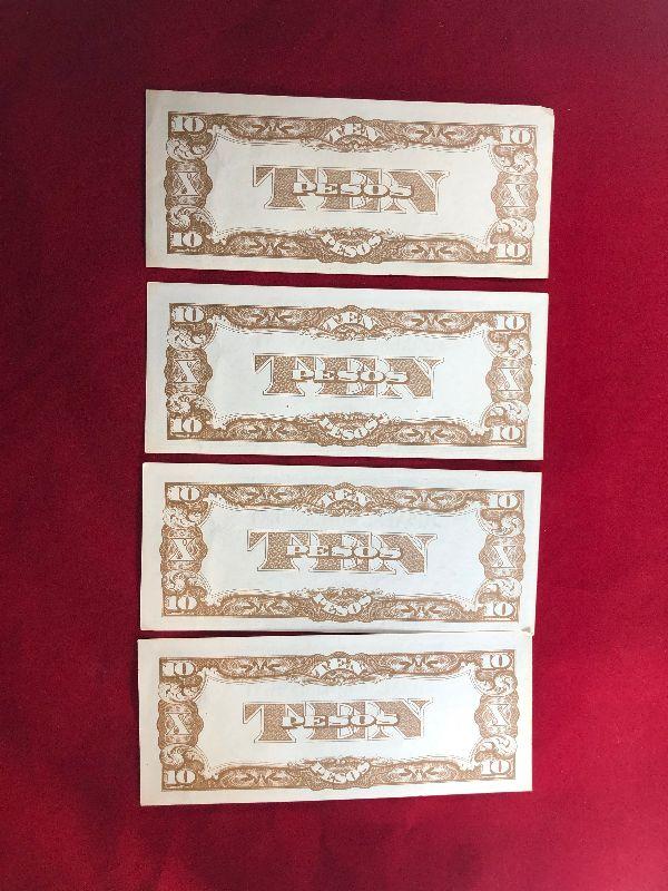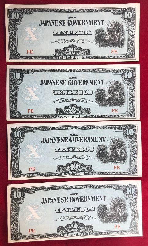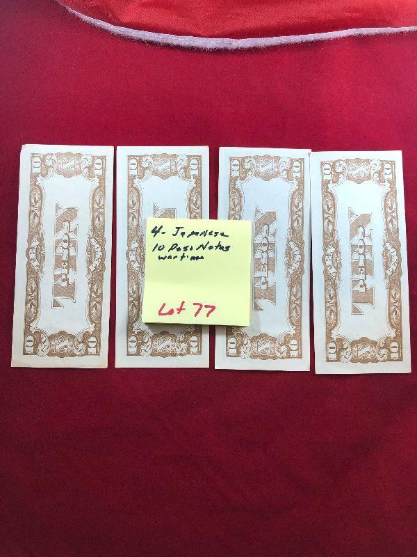 Lot #77- 4 Japanese 10 Peso Notes WWII Currency WW2
