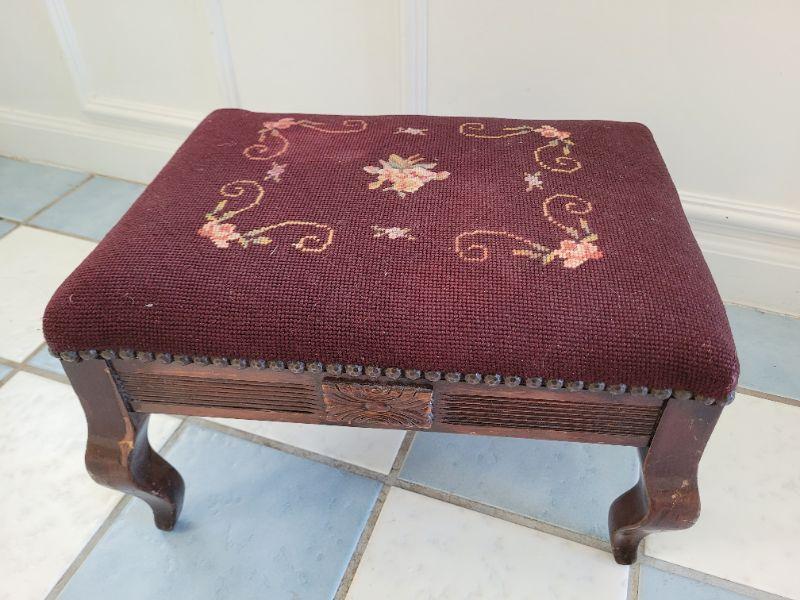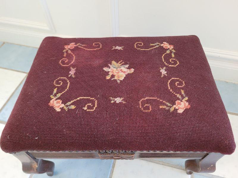 Lot #77: Vintage Embroidered Small Foot Stool 15.5" x 11" x 10"