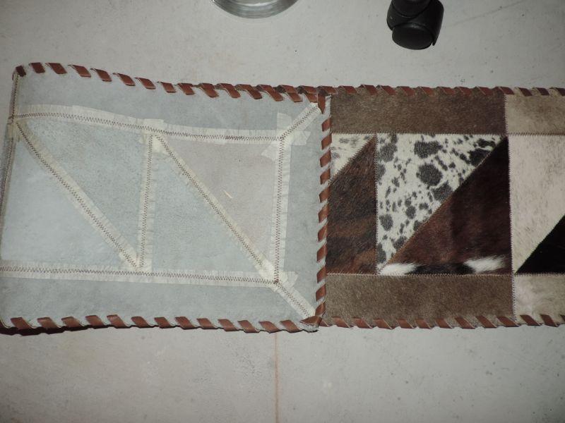 COWHIDE TABLE RUNNER AND DESK CHAIR