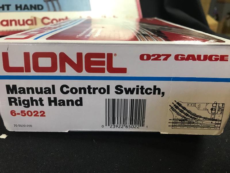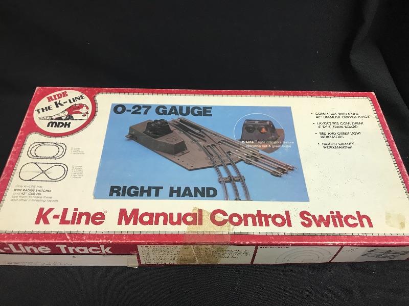 LIONEL 6-5021 manual left hand switch 027 Gauge and a K-Line right hand control switch, both in boxes. Please see all pictures for content of the lot, condition of the lot, and measurements if taken. Pictures are the best representation of the items listed and items are untested unless indicated in description. Thank you for looking and have fun bidding!