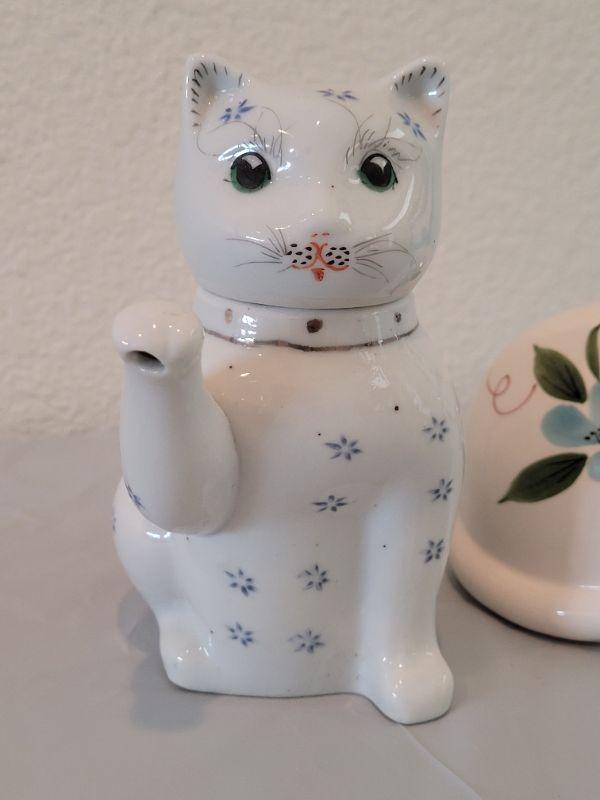 Lot 77: Cat Tea Pot and Painted Cat (marked on bottom)