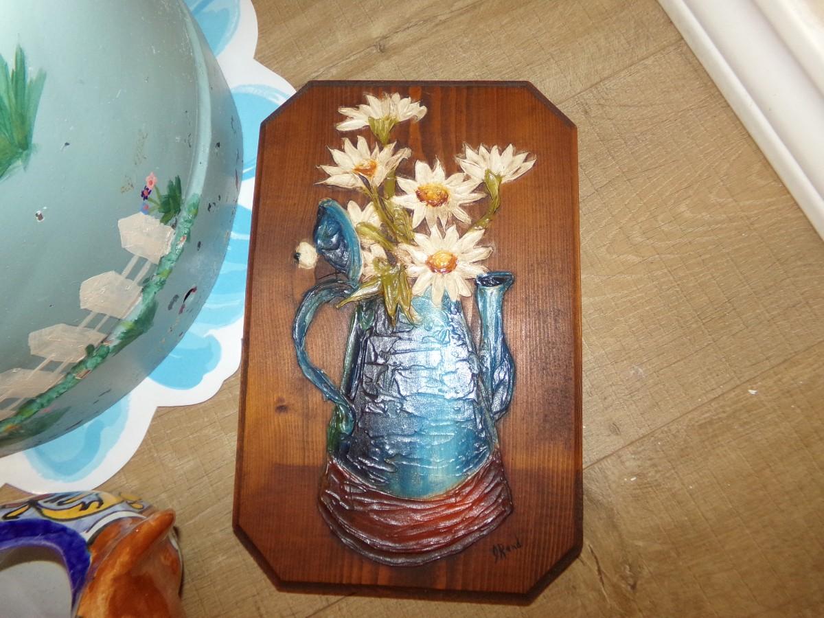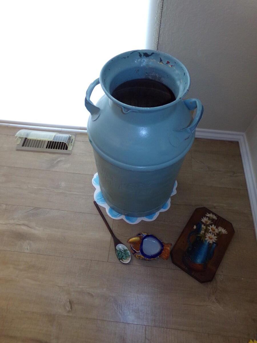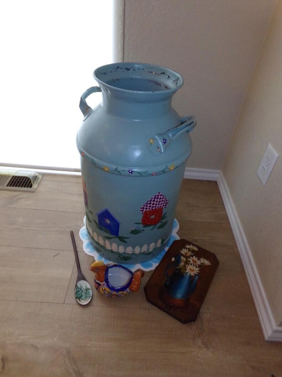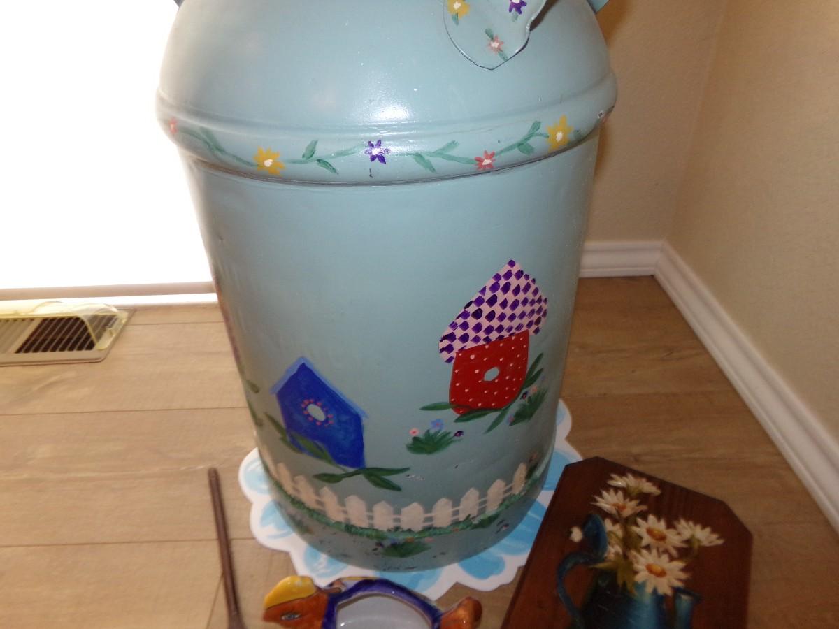 LOT 77 PAINTED MILK CAN & COUNTRY ARTWORK