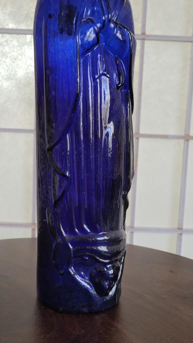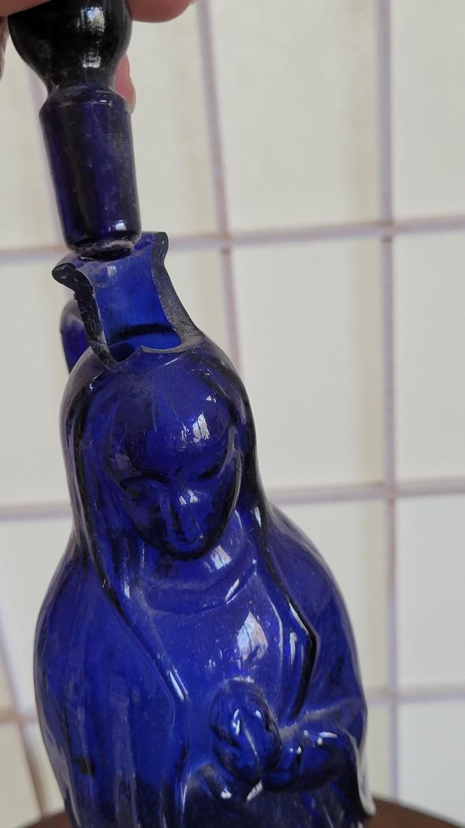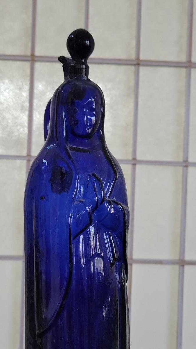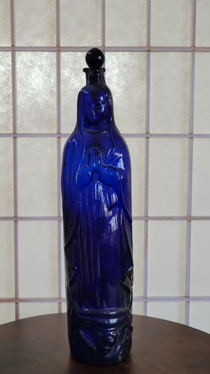 Lot 77: Our Lady of Guadalupe Cobalt Blue Glass Holy Water Bottle