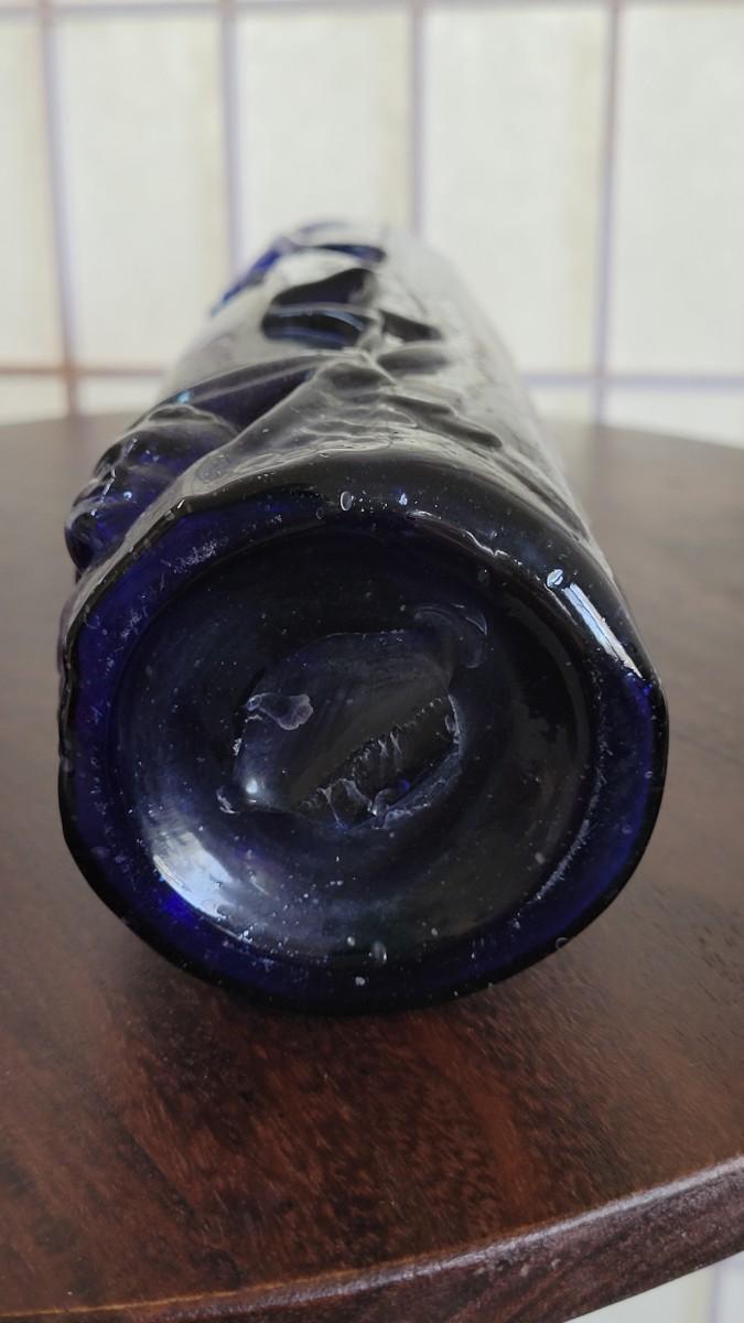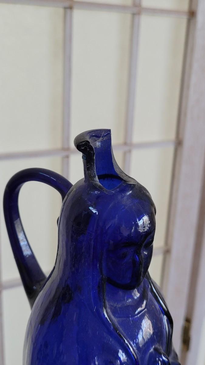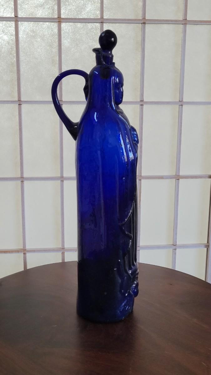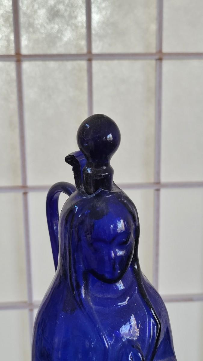Lot 77: Our Lady of Guadalupe Cobalt Blue Glass Holy Water Bottle