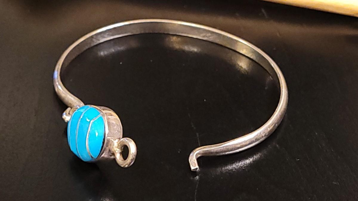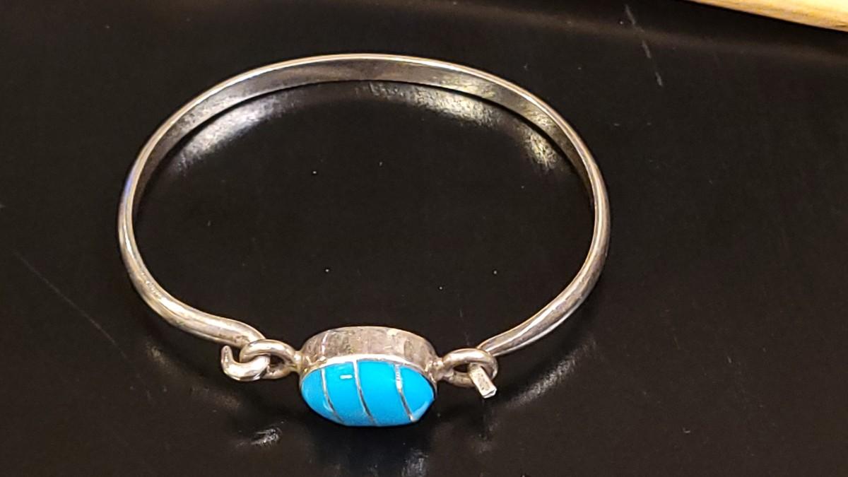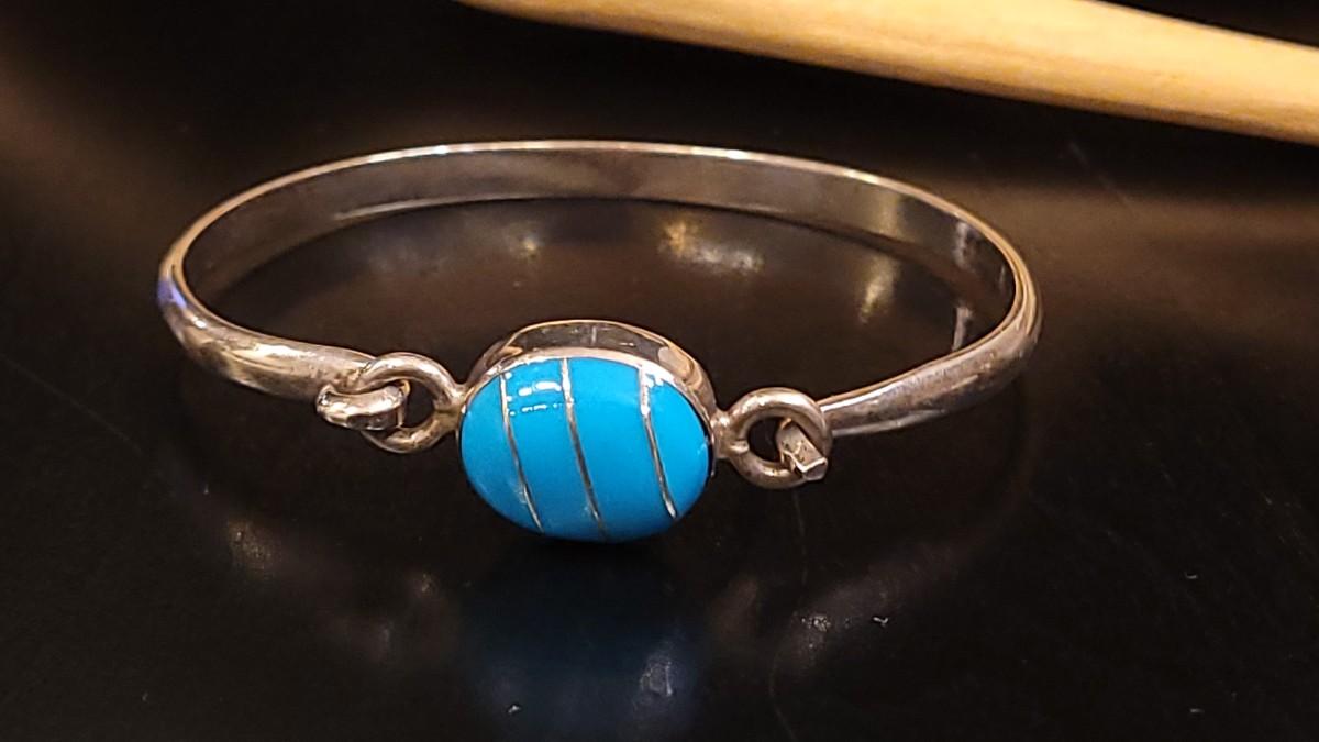 Lot 77: Vintage Taxco Turquoise & Sterling Inlay Bracelet