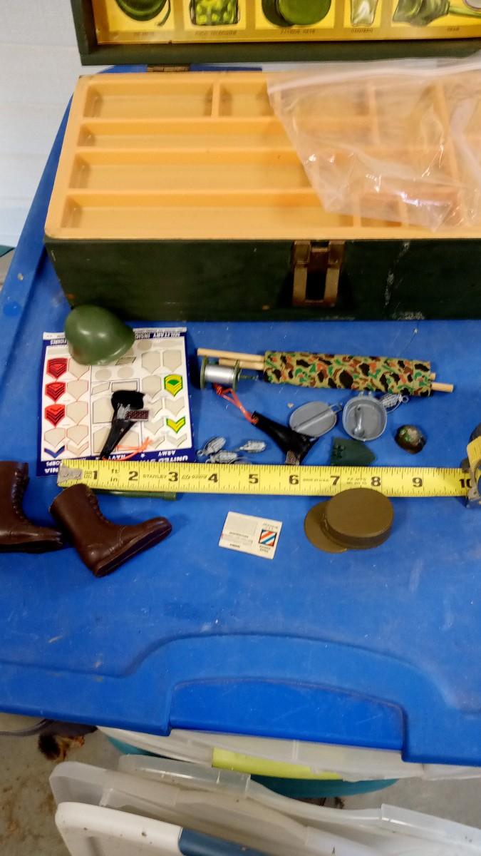 LOT 77 WOOD GI JOE FOOT LOCKER AND SOME ITEMS
