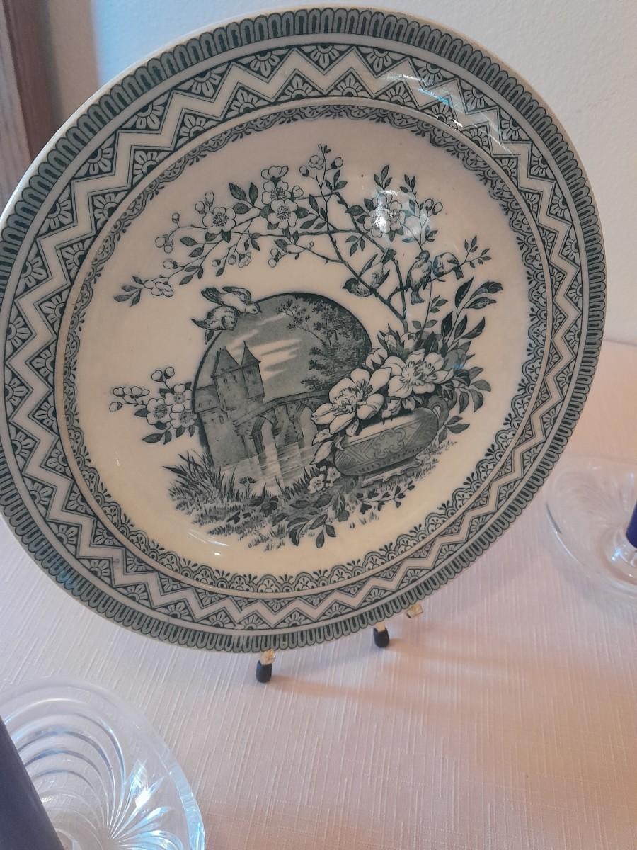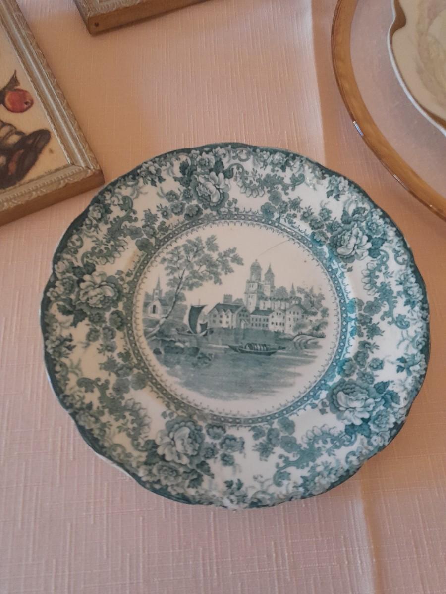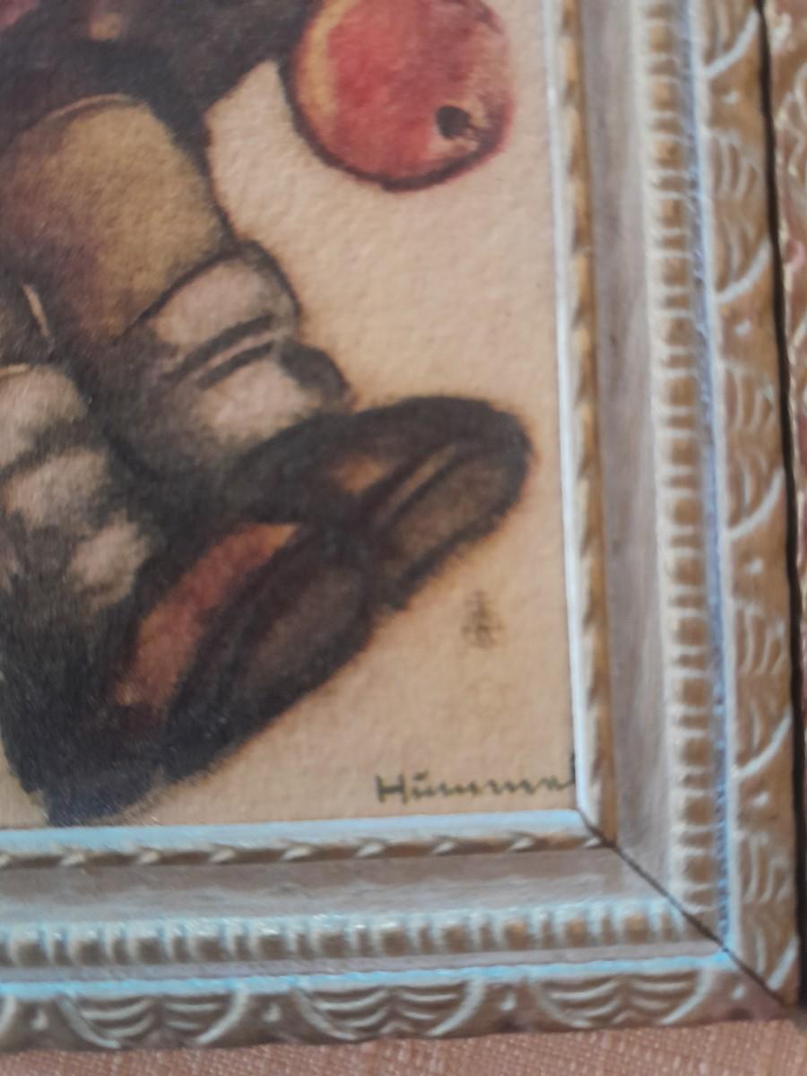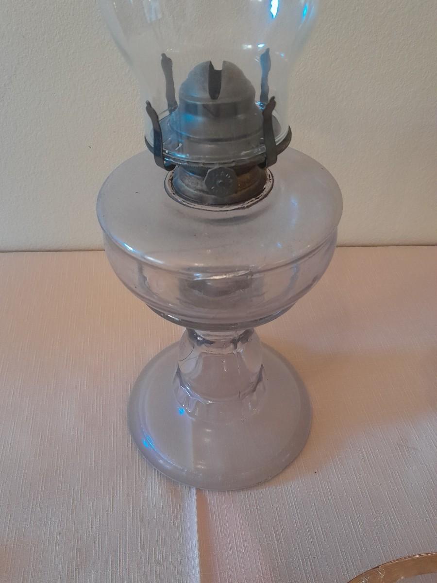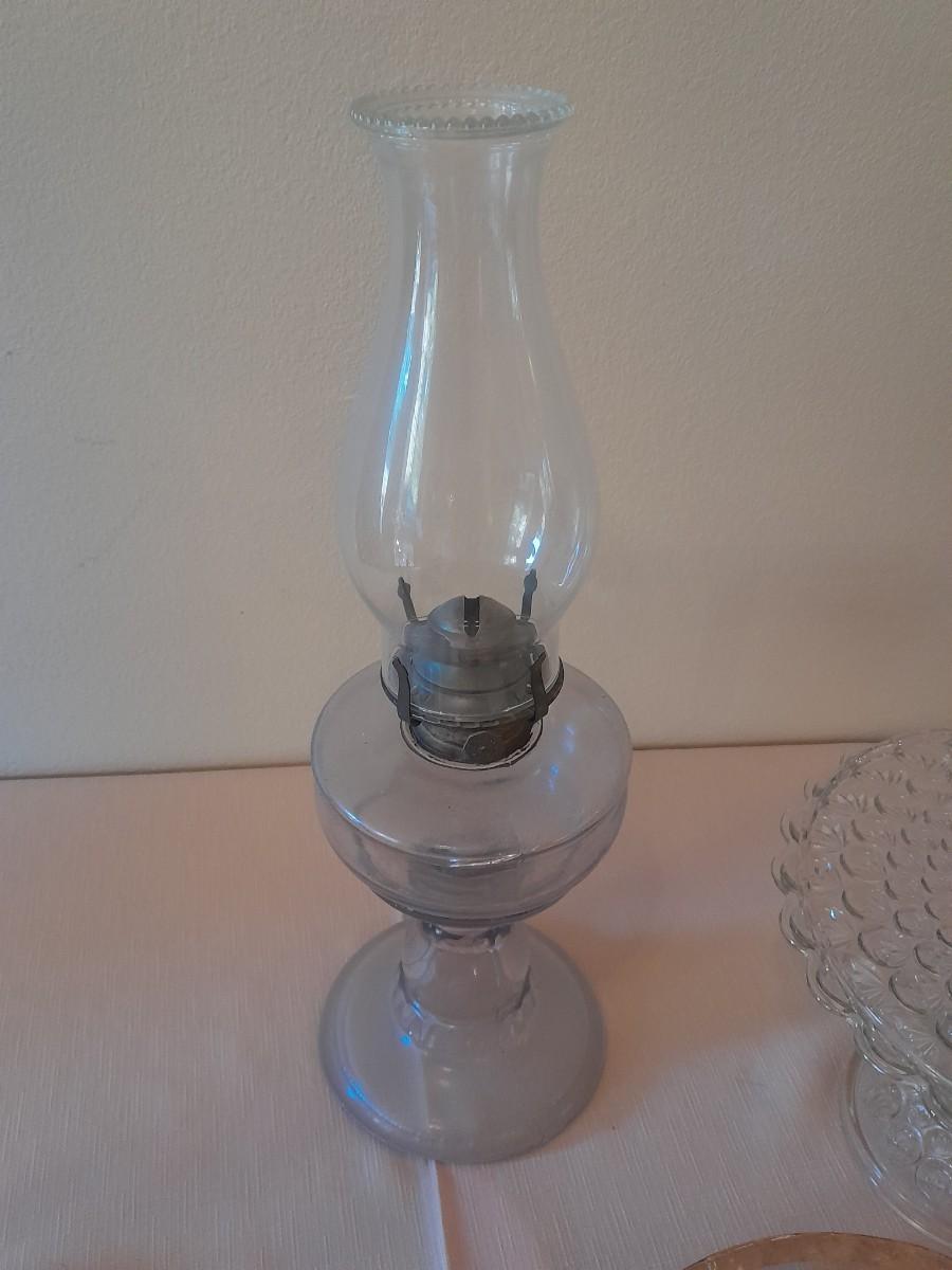 VERY OLD FRAMED HUMMEL PRINTS, VINTAGE OIL LAMP, CAKE PLATE & MORE