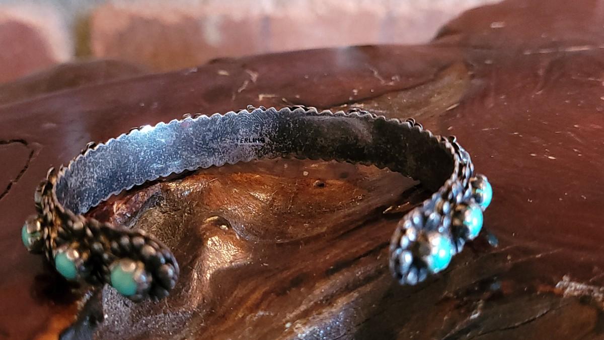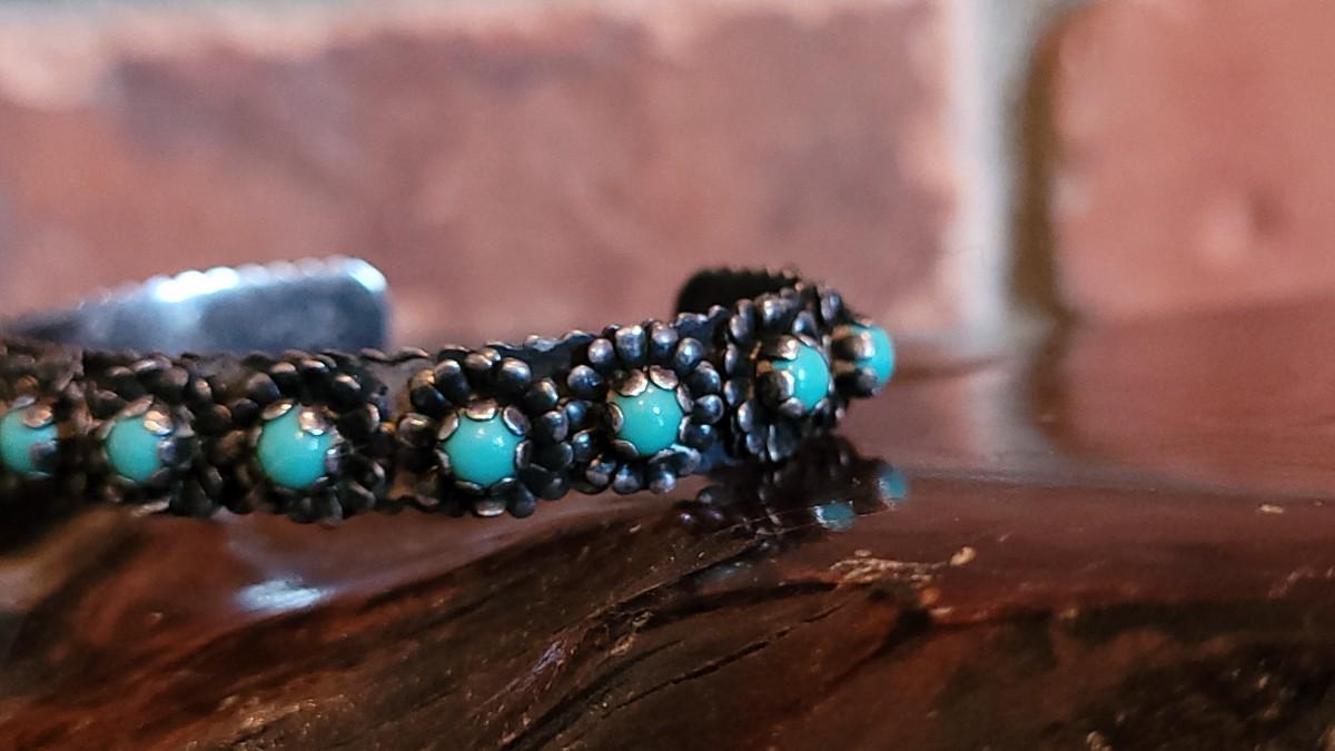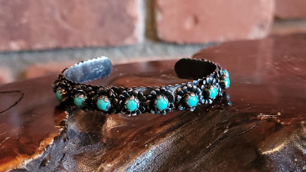 Lot 77: Native American Flower & Turquoise Cuff Bracelet