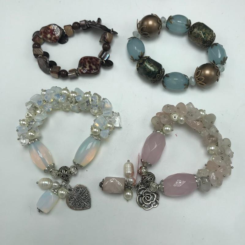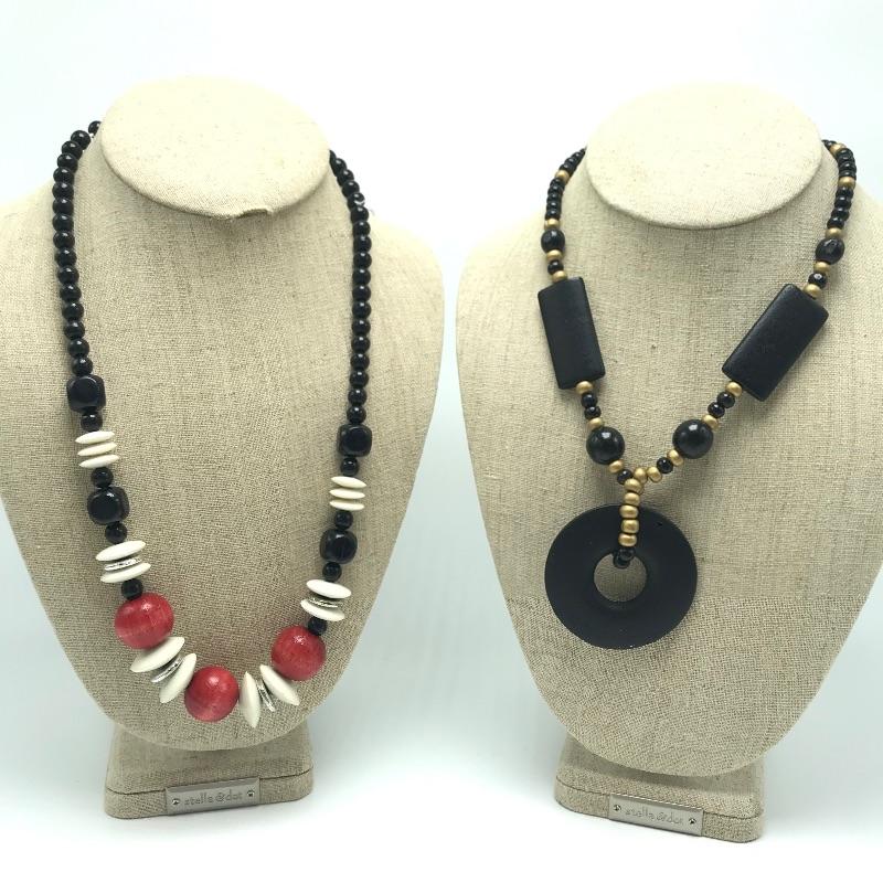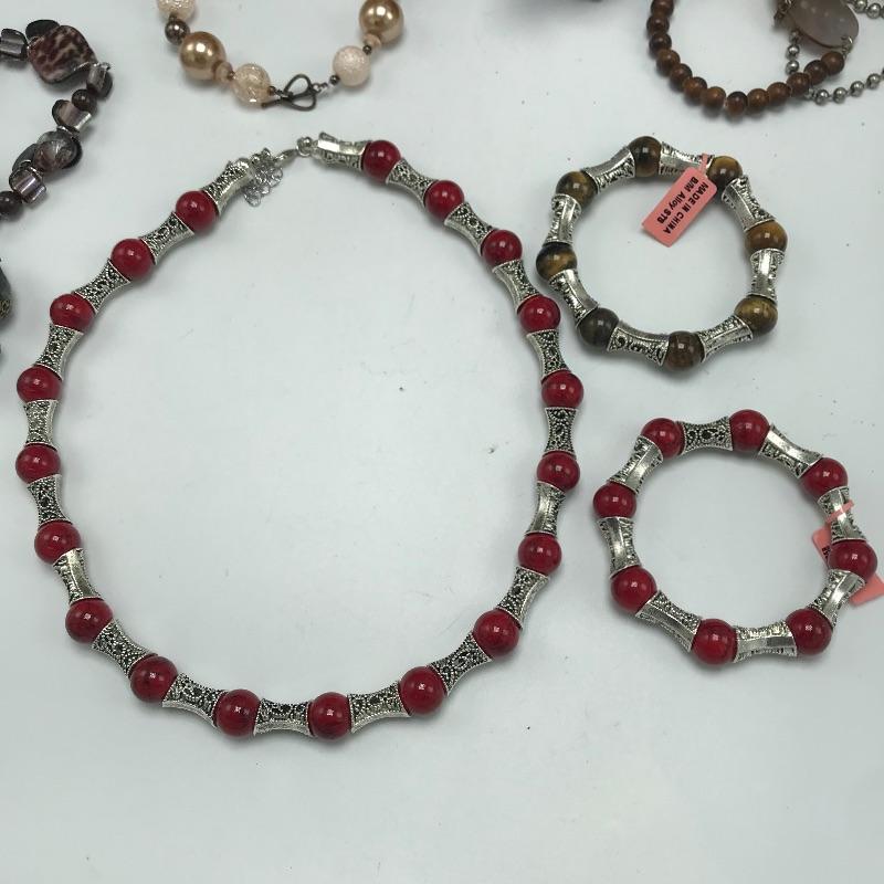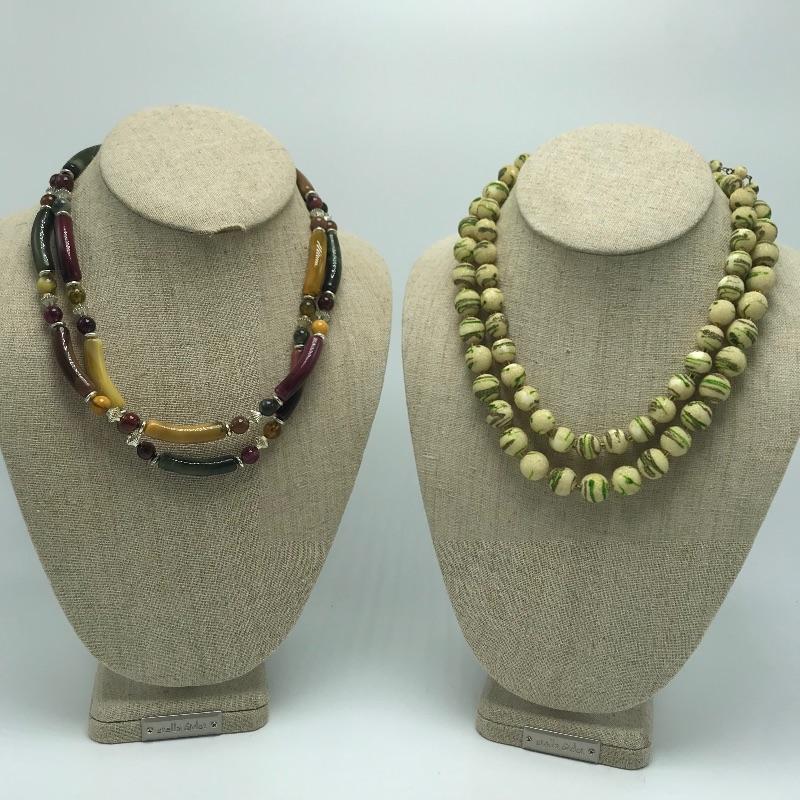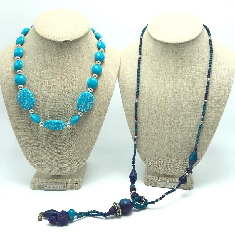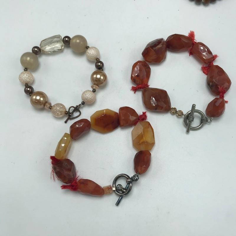 Let your colors shine! Large collection of chunk fashion jewelry with earthly elements! Necklaces, bracelets and a sparkly set of earrings including all sorts of materials like wood, stones, glass, shell and man-made materials too. See photos. One necklace is from Chico’s(The long multi strand one with beads-in pix), the others are unknown.