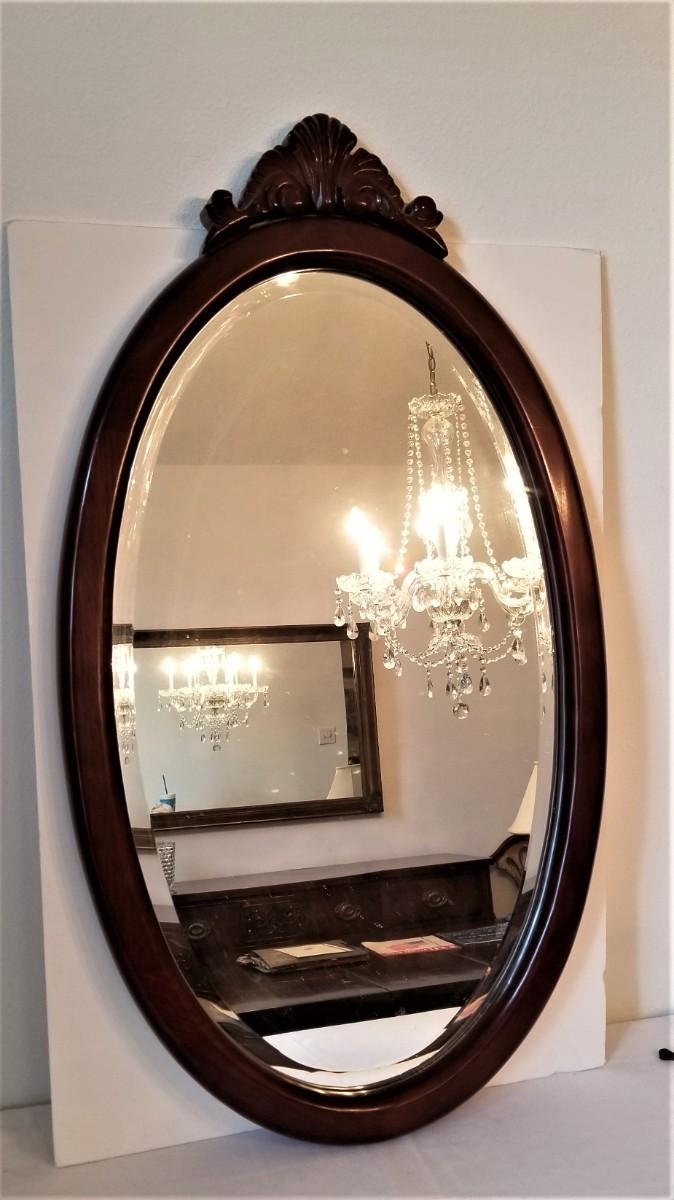 Classic Bombay Company oval beveled wall mirror - nice condition - 33" tall, 18" across. Heavy.