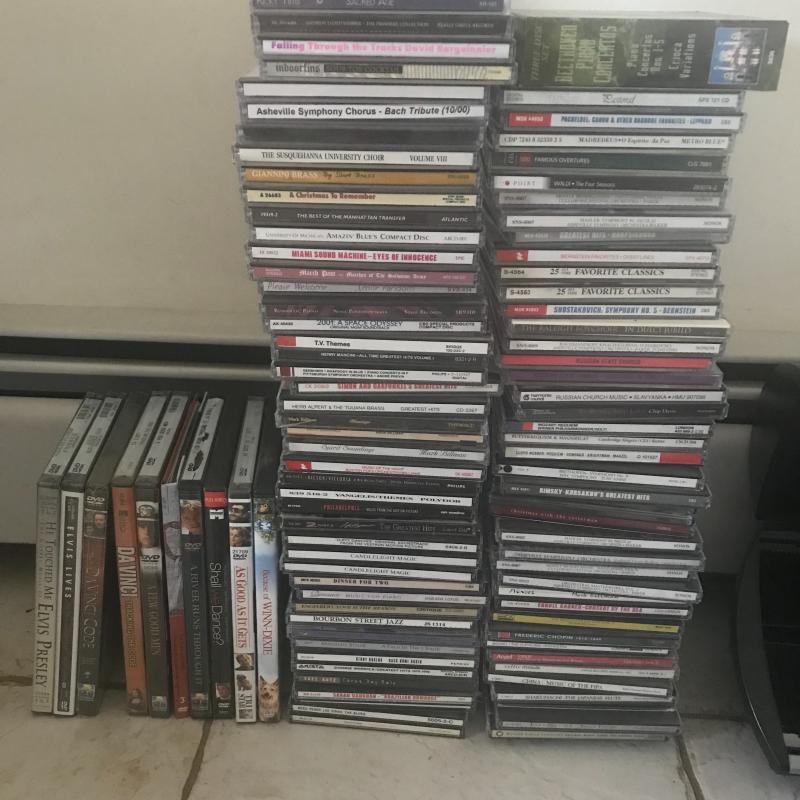 Four different storage containers for CD’s. CD’s range from jazz to symphony, international, and more. Small collection of about ten DVD’s. Some signed CDs also. Local pick up only.
