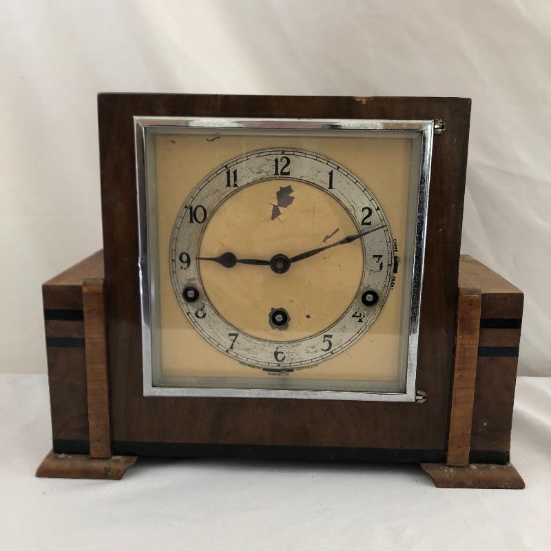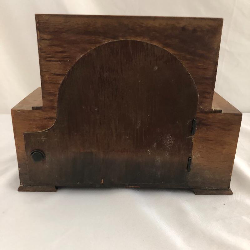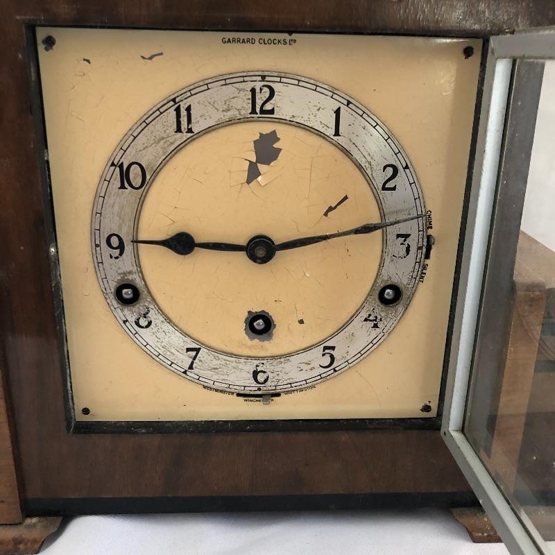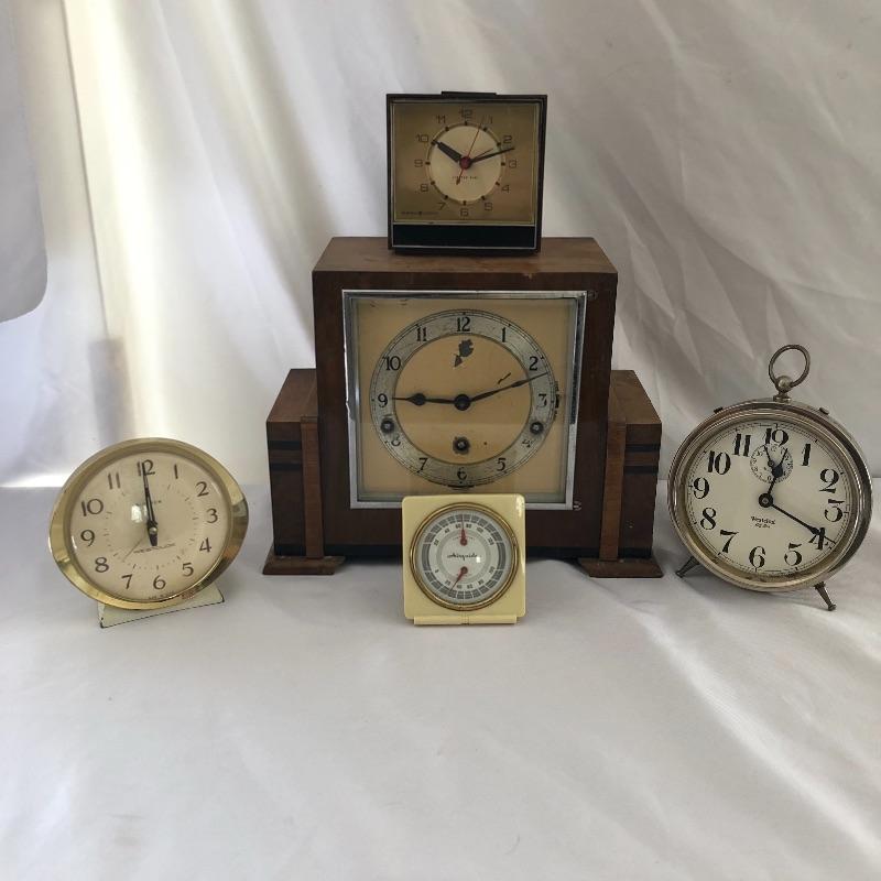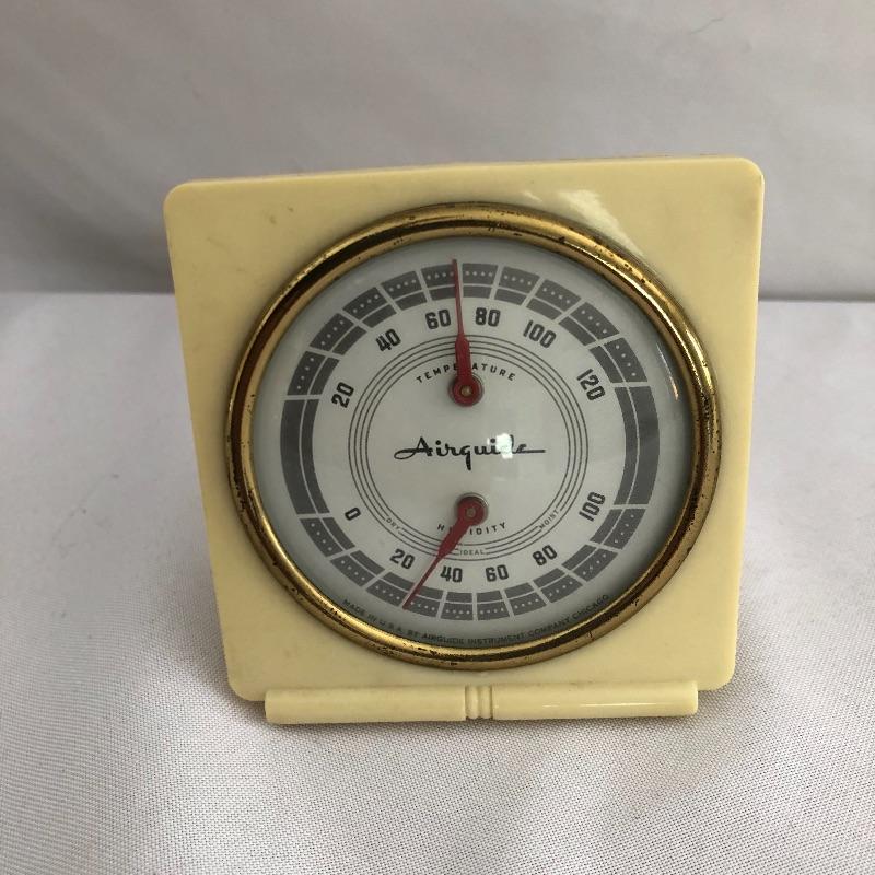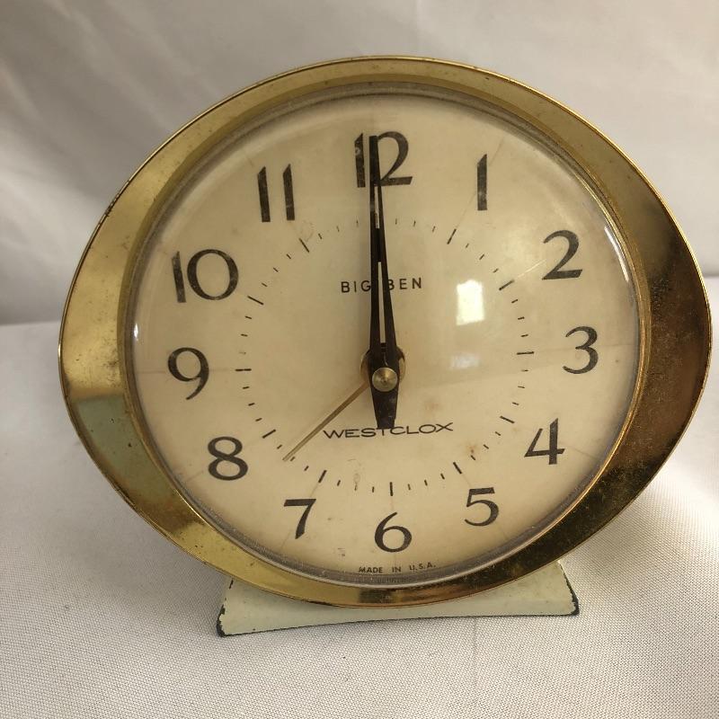 Don’t be late with this collection of clocks. Lot includes a Garrard mantle clock, GE electric alarm clock two Wesclox Big Ben alarm clocks that appear to be seized and a Airguide temperature and humidity gauge. Garrard clock ticks away, appearing to work when tested but did not chime and has no key. Garrard clock measures 5” x 11” x 9”.