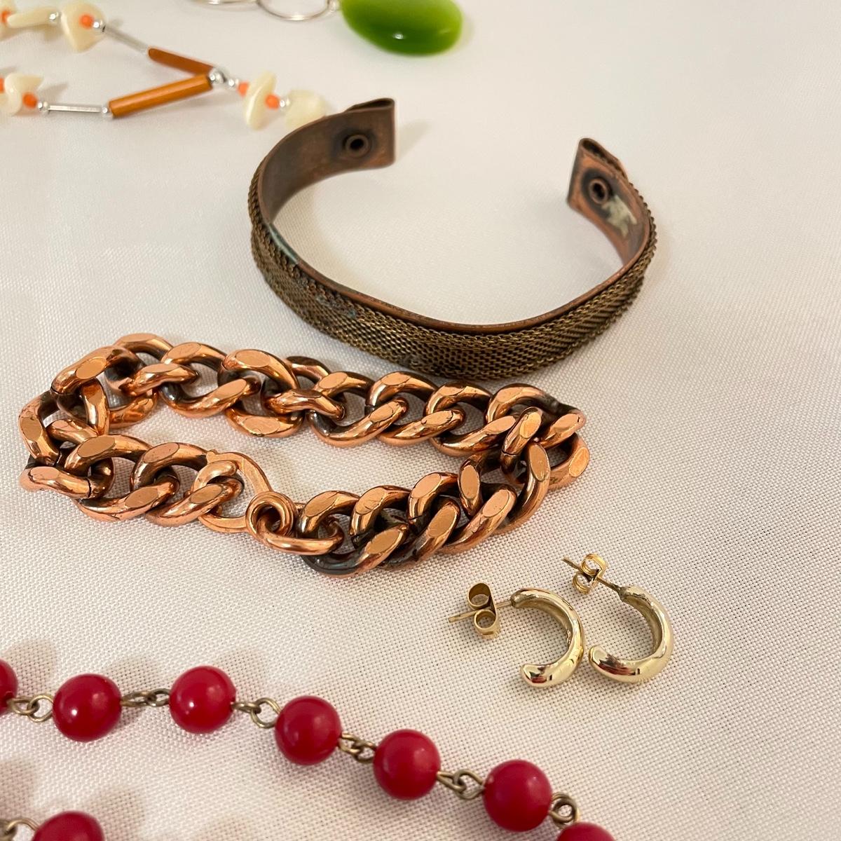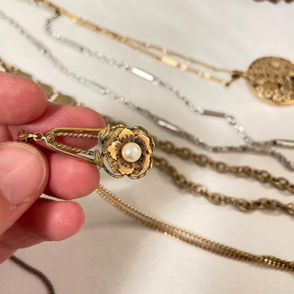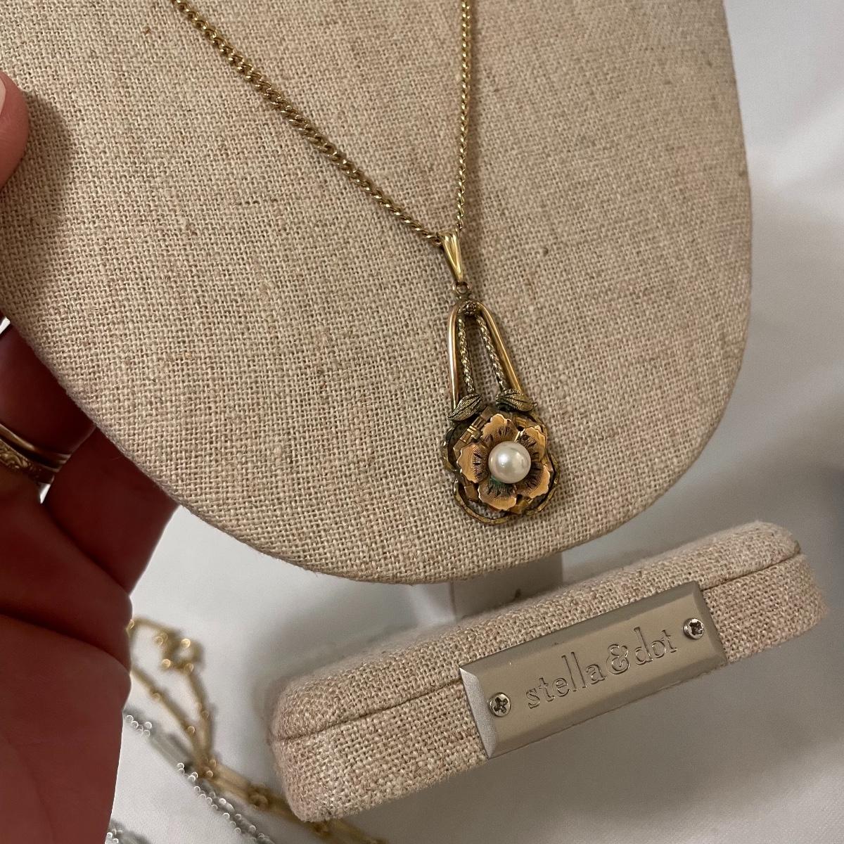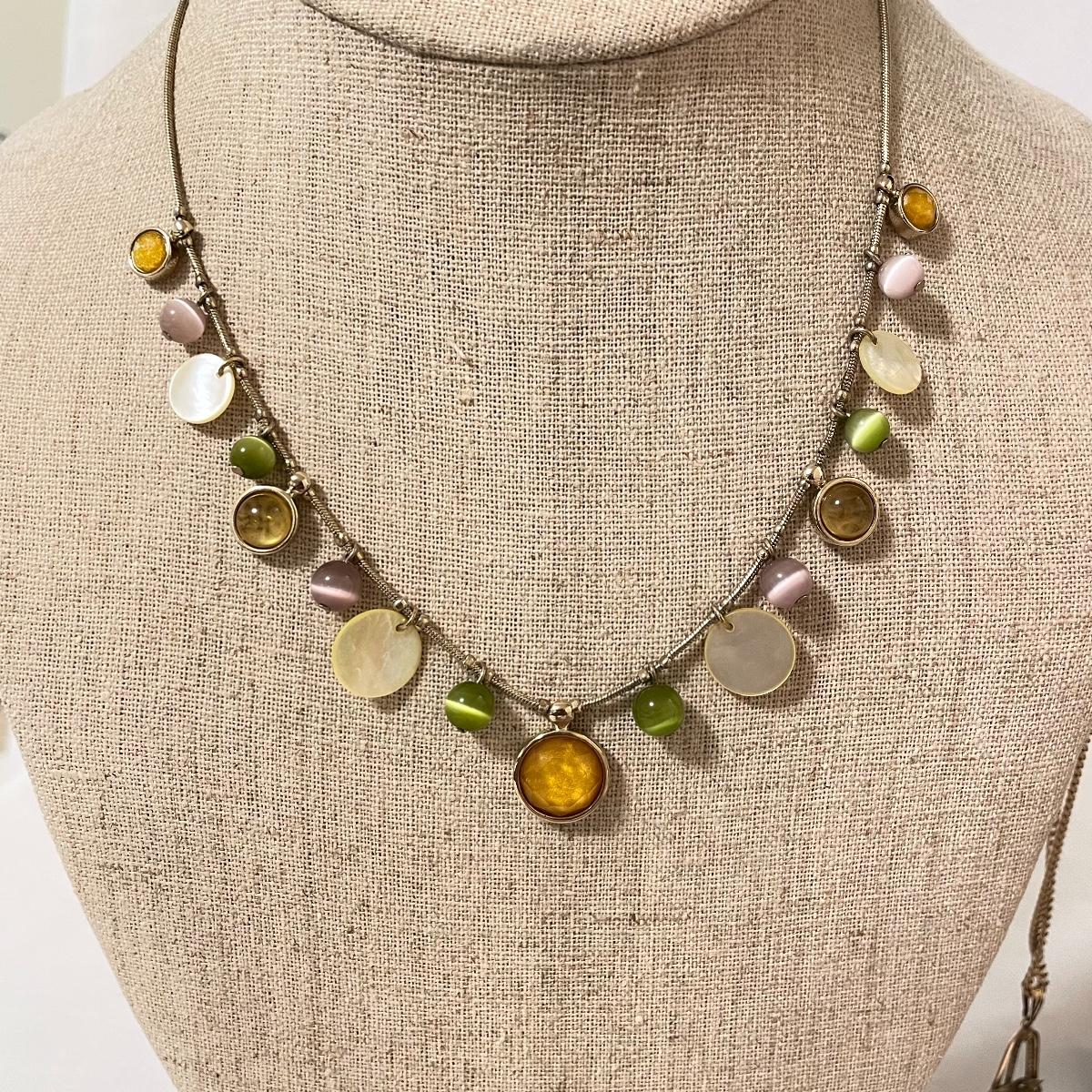 chains to bold citrine colored stone. Lot has a dried floral and pearl for a natural look and a another very pretty tri-colored pearl pendant. See images. Lot contains a bonus of two bracelets and a small posted half hoop earrings pair. Shipping available.
