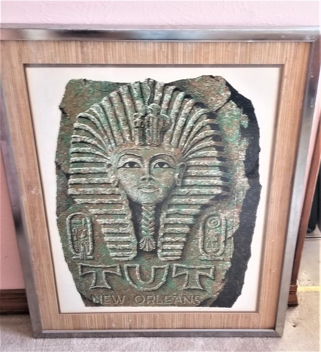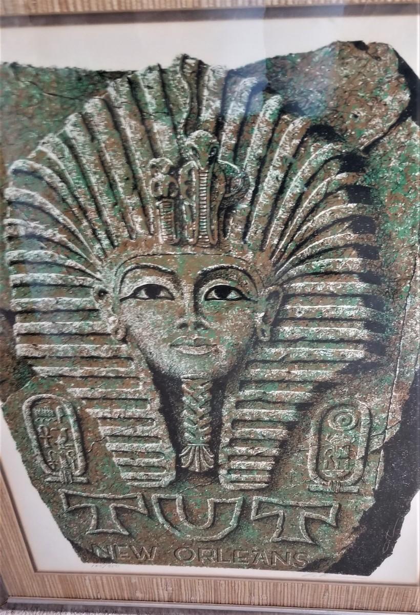 Framed King Tut Exhibit poster from the last 1970's (New Orleans Museum of Art) - signed/numbered - #165/950, pencil signed. Interesting straw mat. 29" tall, 22" across. Good vintage condition.